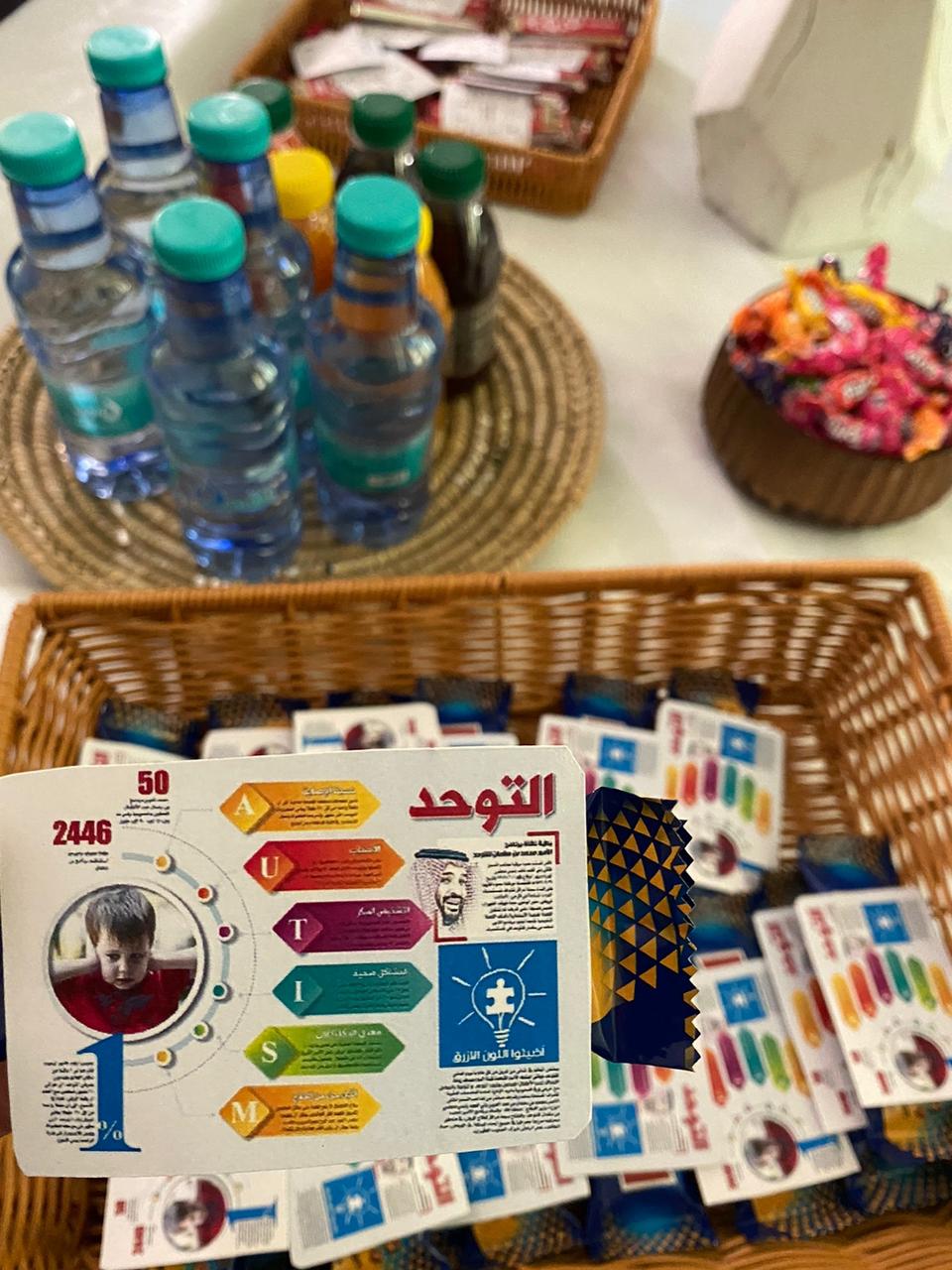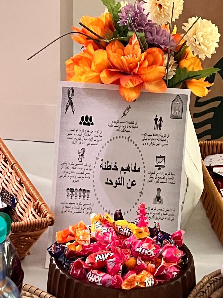 كما صاحب المحاضرة تنظيم ركن توعوي في بهو الكلية تضمن بعض المنشورات التي بلورت أهم المفاهيم عن مرض التوحد.