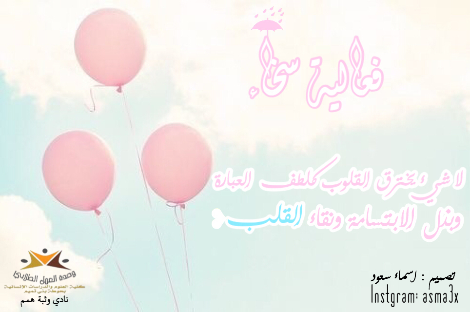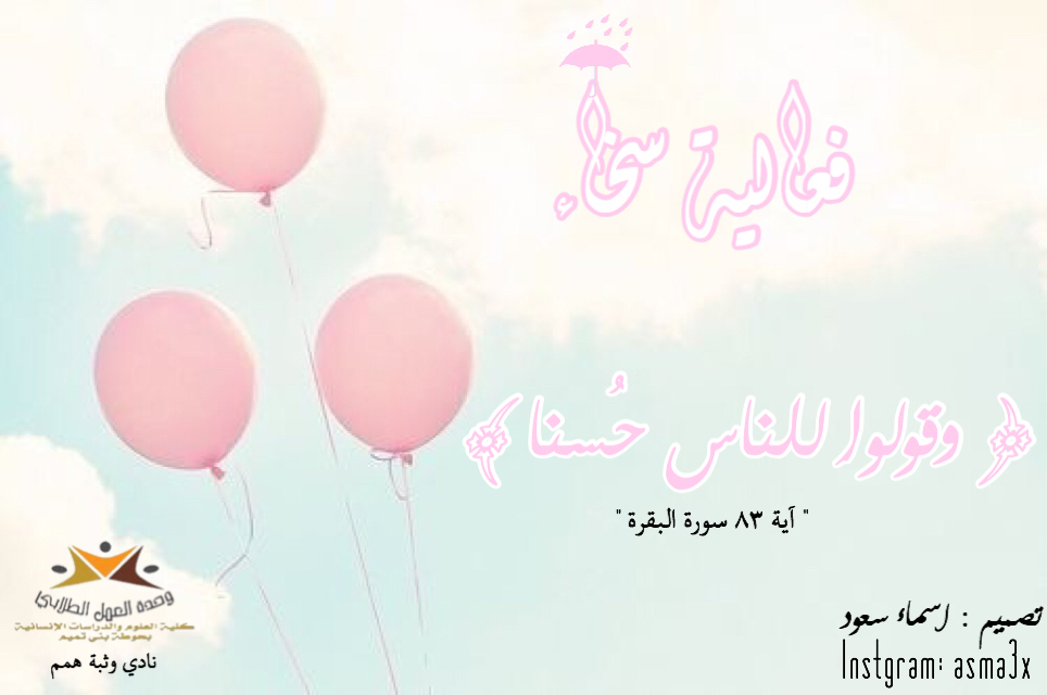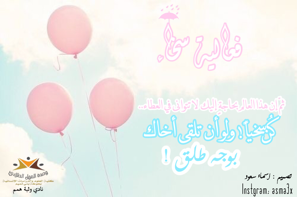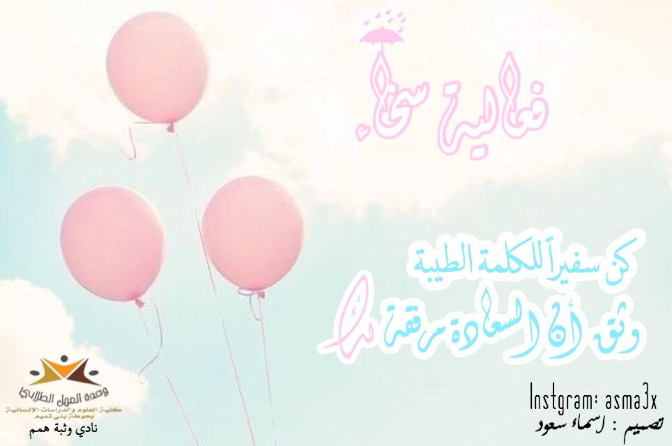 انطلقت يوم الثلاثاء الموافق 22\2\1438هـ عند الساعة 12 ظهراً بساحة الكلية فعالية سخاء والتي ينظمها نادي وثبة همم. والتي تهدف إلى نشر ثقافة السخاء والجود بالكلمة الطيبة لما للقول الحسن من تأثير كبير وإيجابي في نفوس البشر، ونشر السعادة من خلال القول الطيّب الحسن. ويستمر نشر السخاء في هذه الفعالية لمدة ثلاثة أيام في الكلية وعبر وسائل التواصل الاجتماعية.