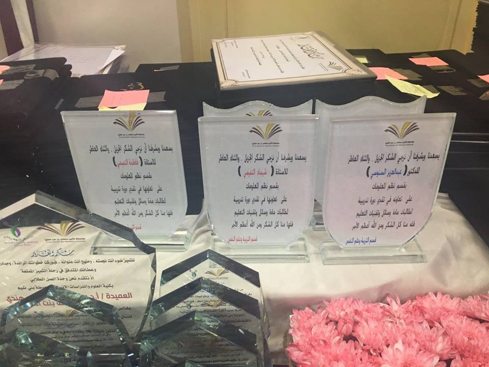 أقامت وحدة العمل الطلابي بكلية العلوم والدراسات الإنسانية بحوطة بني تميم حفل ختام الأنشطة لعام ١٤٣٦-١٤٣٧ هـ ، بحضور عميدة الكلية أ.د عواطف بنت أحمد هندي و وكيلة الكلية للشؤون التعليمية والأكاديمية د. حصة الهزاني . وقد افتتح الحفل بالسلام الملكي ، ثم فيلم من ابداع طالبات الكلية ،وفكرة أ.أمل الموسى وأ. لمياء آل سالم يحكي ما مر به عام النشاط الطلابي من جهد، وتعب، وتميز ،وانجاز بطريقة الفصول الأربعة.