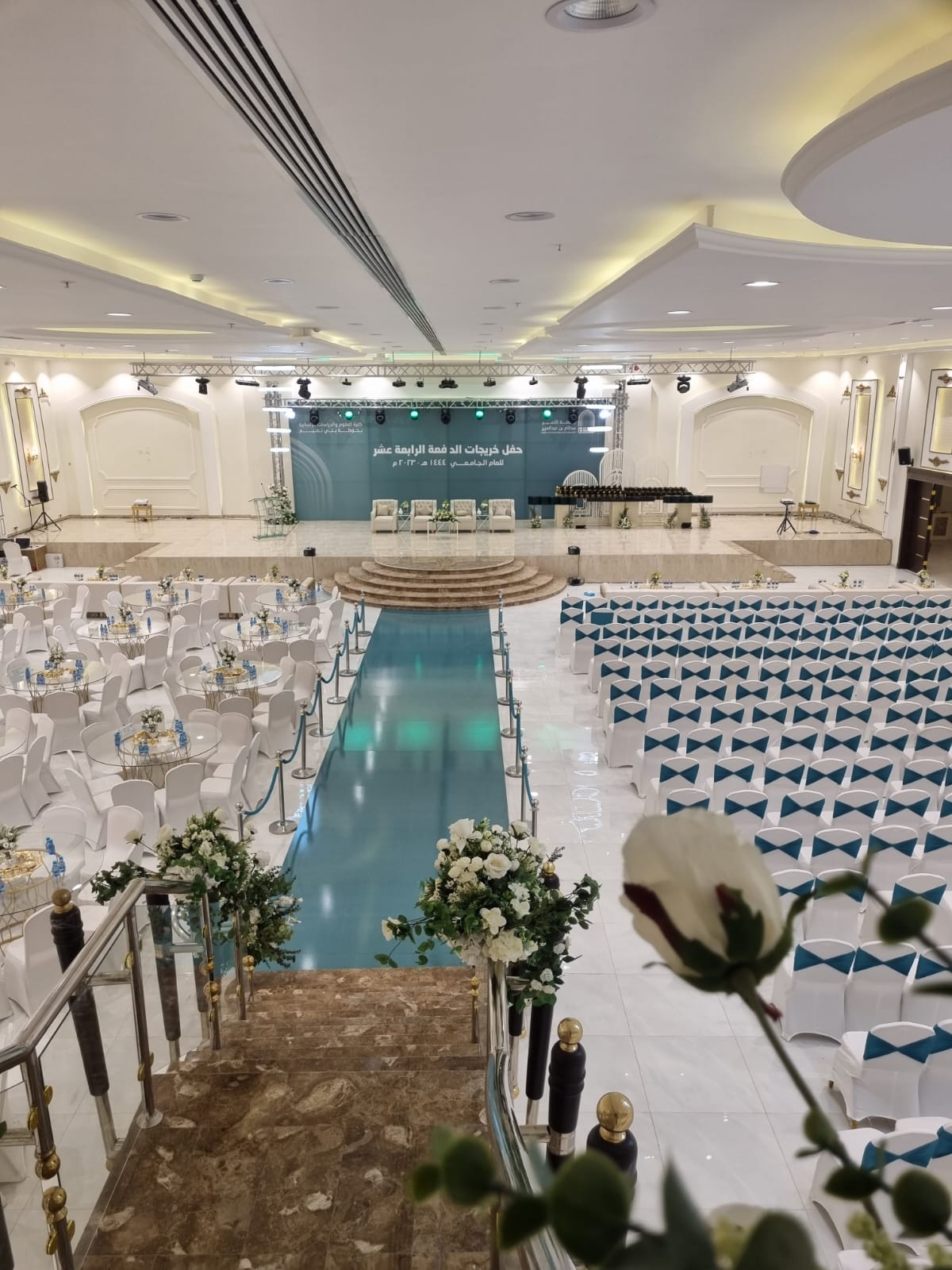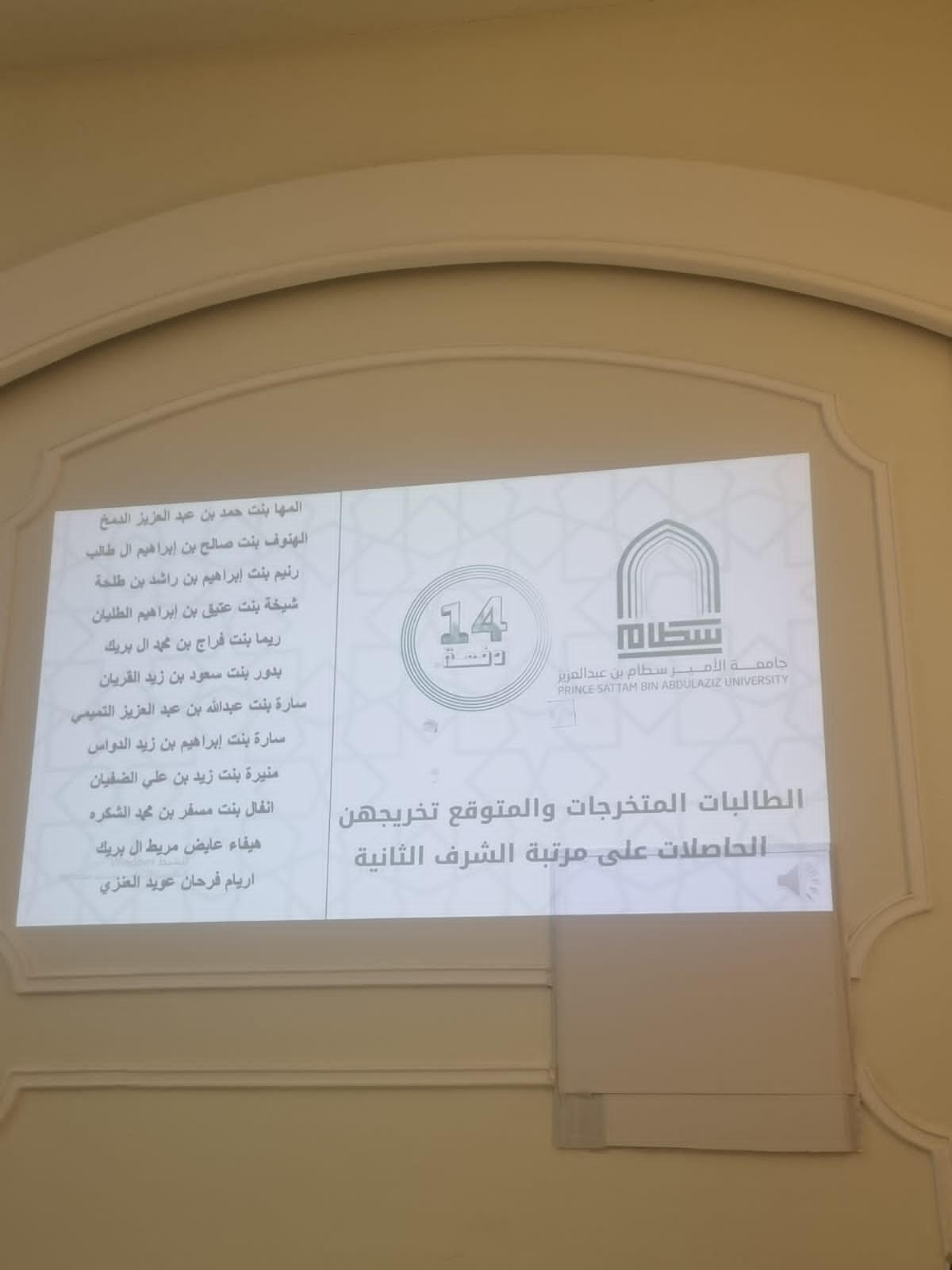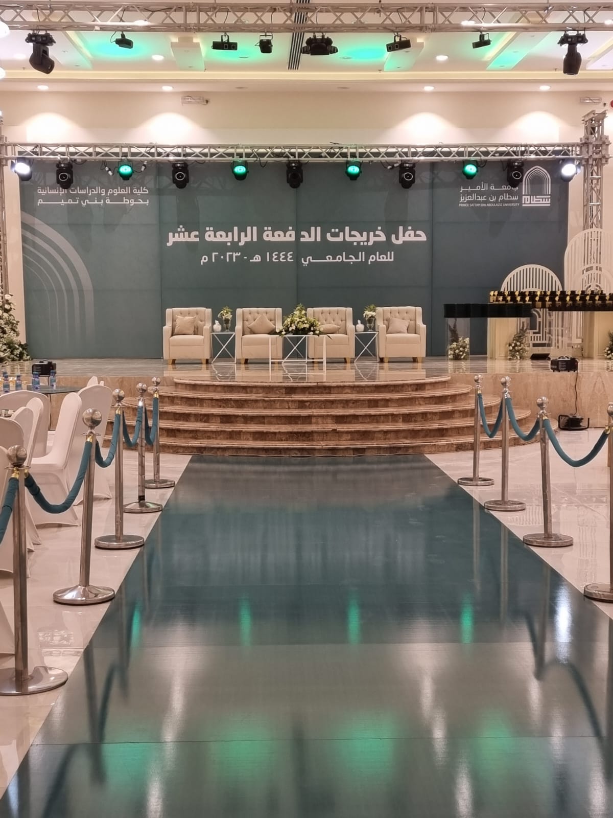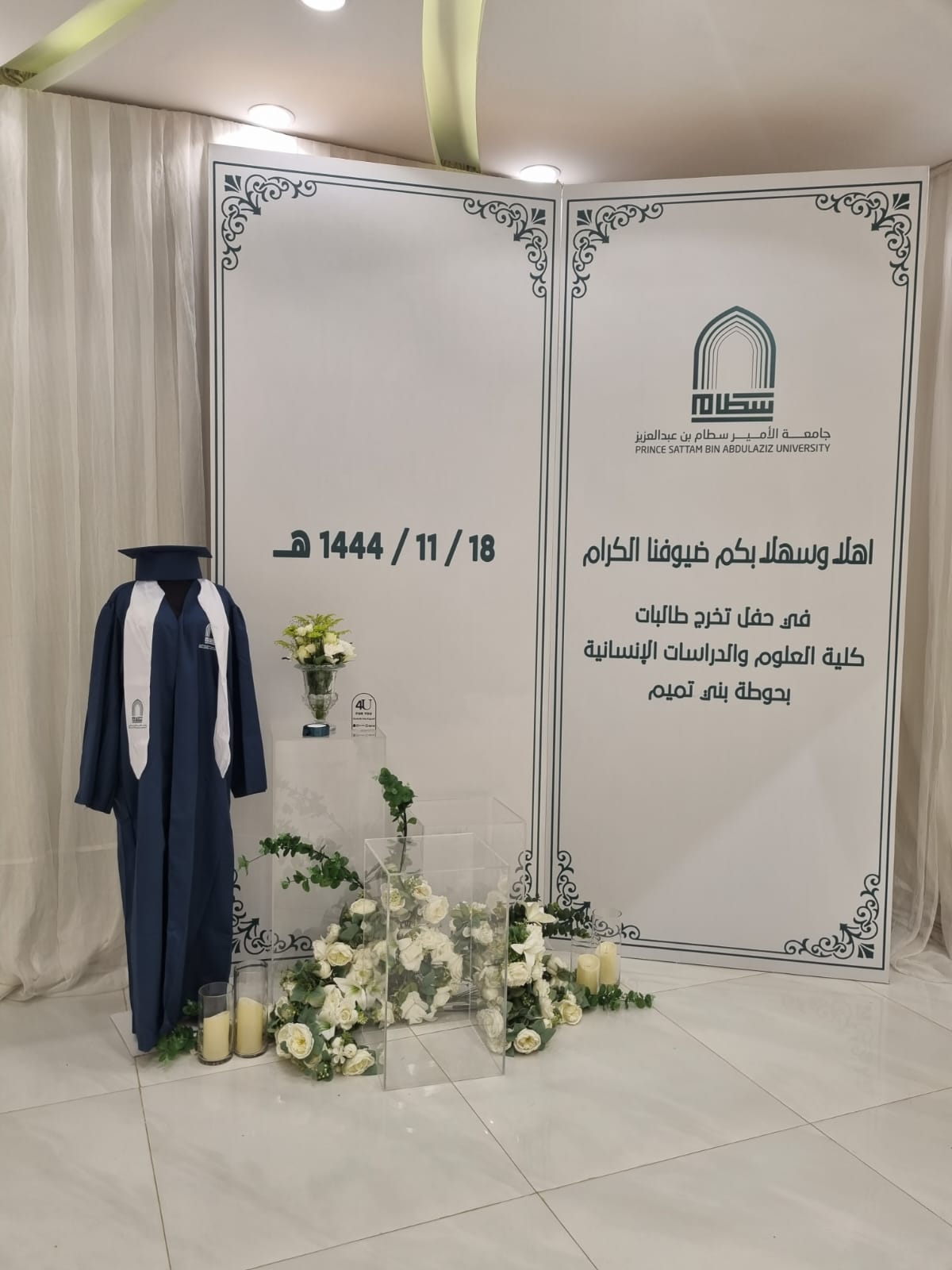 احتفلت كلية العلوم والدراسات الإنسانية بحوطة بني تميم بخريجات الدفعة الرابعة عشر من مرحلة درجة البكالوريوس لطالبات الكلية تحت رعاية سعادة العميدة الدكتورة/ حصة بنت سعود الهزاني، وذلك في يوم الأربعاء الموافق: 1444/11/18هـ. تشرف الحفل بحضور وكيلات الكلية ووكيلة كلية إدارة الأعمال د. مليحه القحطاني وحرم سعادة مدير التعليم ومديرة بنك الراجحي وأعضاء هيئة التدريس وامهات الطالبات. وقد زفَت الكلية خريجات الفصل الدراسي الأول والثاني والثالث والترم الصيفي للعام الجامعي١٤٤٤هـ ليتأهلن للسباق في سوق العمل والمشاركة في تحقيق رؤية المملكة 2030 في موكب مهيب يملأه الفرح والابتهاج بحصادٍ مثمرٍ لغرس أعوام سابقة وتحقيق أهداف الجهد والمثابرة. بدأ الحفل بمسيرة الطالبات التي تقدمت فيها مراتب الشرف الأولى والثانية من الطالبات الخريجات والمتوقع تخرجهن، ثم انطلق السلام الوطني معلناً بدء الحفل مع وقفة اعتزاز وعرفان للوطن، بعد ذلك بدأ الحفل الخطابي المعد بهذه المناسبة بتلاوة آيات من القرآن الكريم، ومقدمة من الطالبة جيوان التميمي ثم كلمة عميدة الكلية د. حصة بنت سعود الهزاني رحبت فيها بالضيوف وباركت للخريجات فرحة التخرج متمنية لهن مزيدًا من النجاح، كما ثمنت دور أمهات الخريجات وشكرتهن على جهودهن وقدمت لهن التهنئة على نجاح بناتهن، واكدت على دور الطالبة في بناء الوطن وتحقيق رؤية المملكة، وما توليه حكومة خادم الحرمين الشريفين الملك سلمان وولي عهده حفظهما الله من رعاية بأبناء وبنات الوطن كما ذكرت حرص جامعة الأمير سطام بن عبد العزيز برعاية سعادة رئيس الجامعة أ.د. عبدالرحمن بن هلال الطلحي على ما توليه من رعاية واهتمام للطالبات، وشكرت أعضاء هيئة التدريس والهيئة الإدارية ومنظمي الحفل. بعد ذلك ألقت الطالبة: أمل الجميل كلمة الخريجات، نيابة عنهن شكرت فيها عميدة الكلية والحضور على مشاركتهن الطالبات هذا الحفل وفرحة الإنجاز. واستمرت فقرات الحفل حيث تم عرض مقطع فيديو "ذكريات خريجة "ثم تشرفت خريجات الكلية باستلام شهادات الشكر في موكب زاهٍ ملؤه الفخر والتألق. واختتم الحفل وسط فرحة الخريجات وأهاليهن برفع قبعات التخرج مع صوت أهازيج فوق القمة.