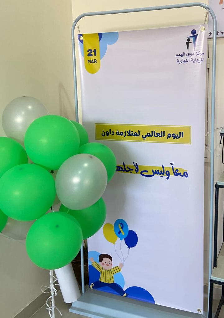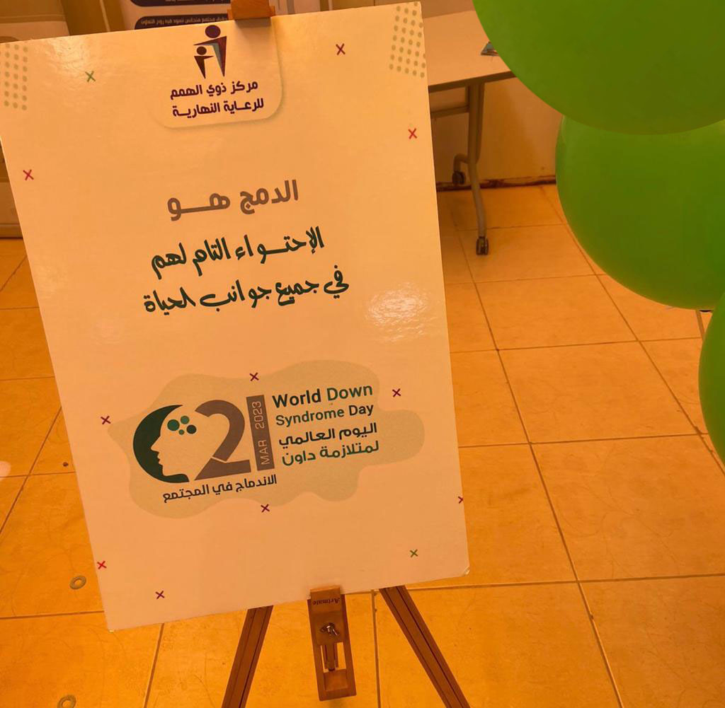 تُمثل المسؤولية المجتمعية للمؤسسات ركنًا أساسيًا من أركان رؤية المملكة 2030 وأحد أهداف الجامعة الاستراتيجية وبناء على ذلك وتحت رعاية كريمة من عميدة كلية العلوم والدراسات الإنسانية بحوطة بني تميم الدكتورة حصة بنت سعود الهزاني استضافة إدارة المسؤولية المجتمعية مركز ذوي الهمم للرعاية النهارية بالتعاون مع مستشفى حوطة بني تميم لتفعيل اليوم العالمي لمتلازمة داون تحت شعار (معاً وليس لأجلهم) في يوم الثلاثاء الموافق 1444/8/29هـ. وضح من خلاله الجوانب النفسية والاجتماعية والصحية لمصابي متلازمة داون وأثر الاندماج في المجتمع عليهم واشتمل على توزيعات تحمل عبارات تبين ذلك وزعت عبر أطفال المركز في أرجاء الكلية.