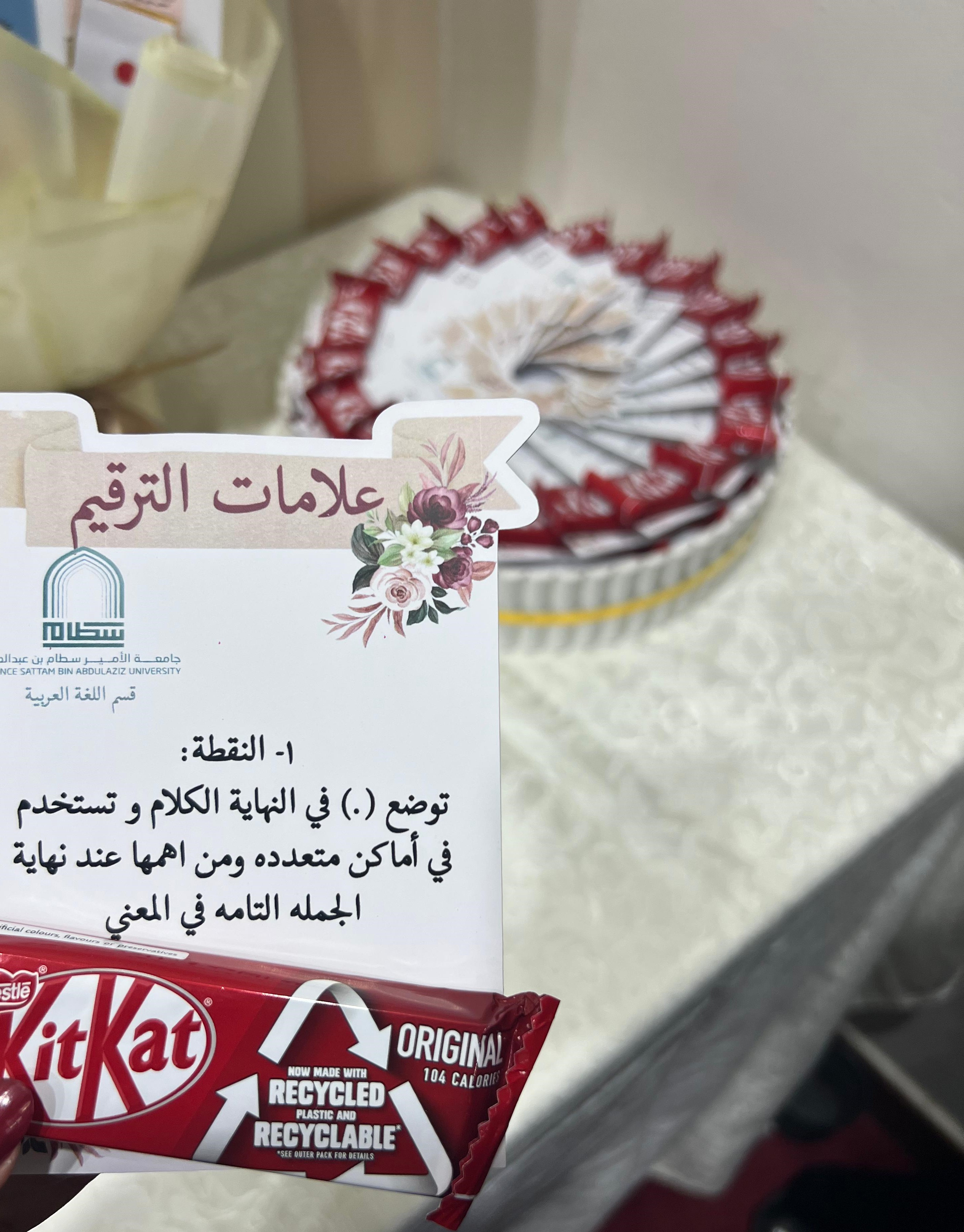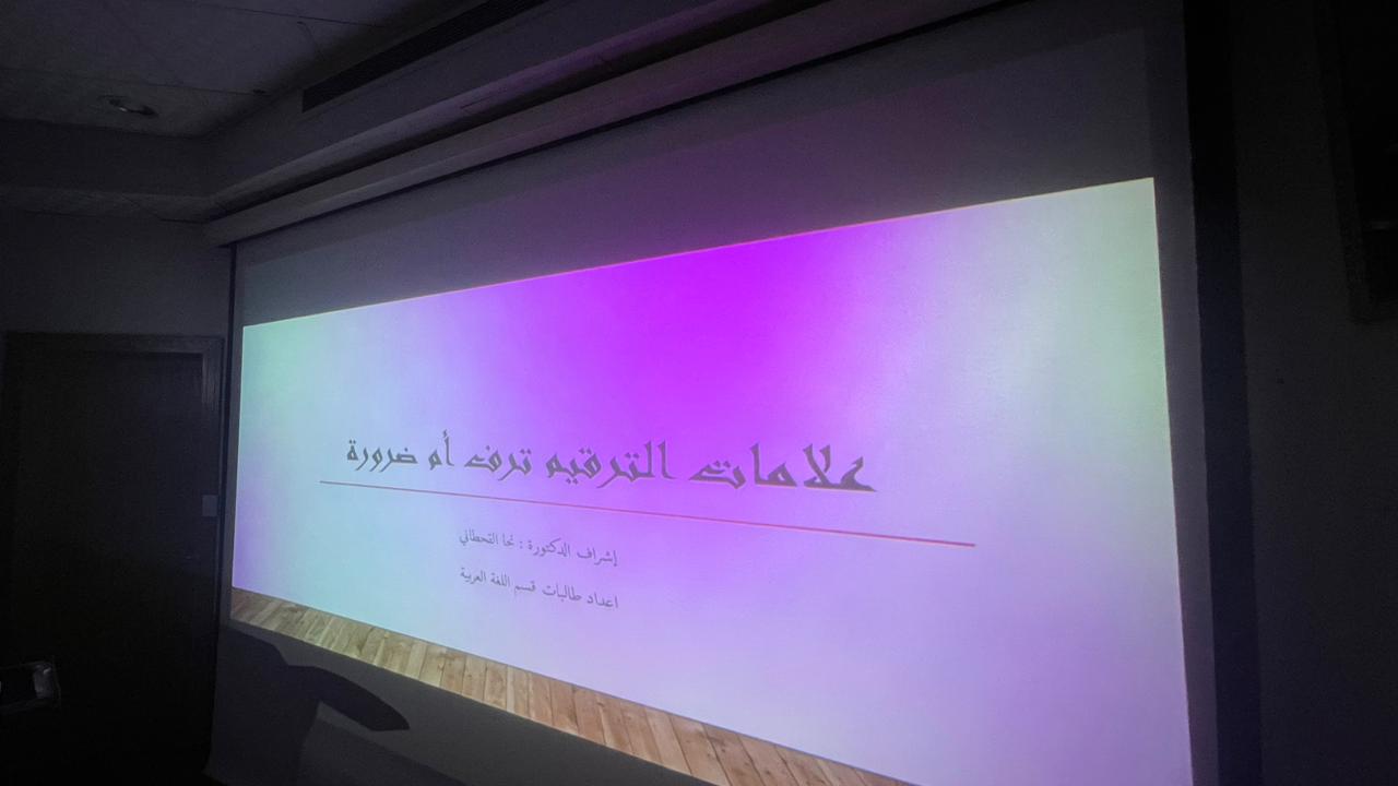 نظمت وحدة العمل الطلابي ممثلة بقسم اللغة العربية بكلية العلوم والدراسات الإنسانية بحوطة بني تميم برنامجًا بعنوان (علامة الترقيم ترف أم ضرورة) بإشراف الدكتورة نحا القحطاني يوم الأربعاء١٧/ ٤/ ١٤٤٥هـ بتمام الساعة التاسعة والنصف في مسرح الكلية، حيث ابتدأ البرنامج بمقدمة عن علامات الترقيم ثم مقطع كوميدي عن كتابة العلامات، وبعده تعريف شفهي عن كل علامة من إلقاء الطالبات ويتزامن معه توزيعات بأهمية علامات الترقيم خاصة في الكتابة الرقمية، ثم مشهد من الحياة يبين ضرورة الاهتمام بعلامات الترقيم.