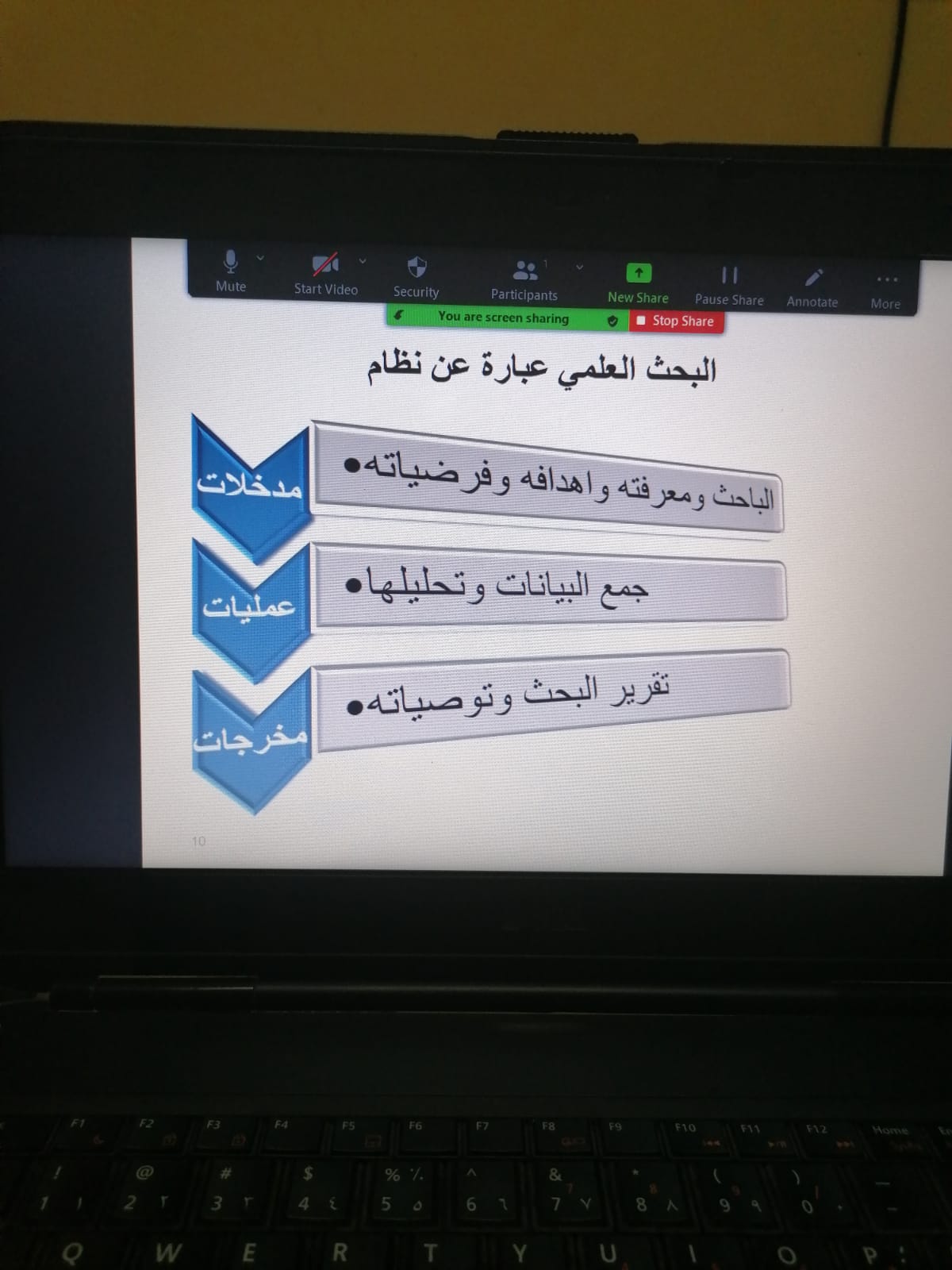 وأوضحت أنسب الطرق لتحديد مجتمع الدراسة وطرق أخذ العينات والحجم الأمثل لها، كما تم توضيح فوائد التحليل الإحصائي والمشاكل التي تواجه الباحث عند التحليل الإحصائي، ومن ثم إتيحت الفرصة للطالبات لعمل تطبيقي مصغر وكان هنالك تفاعل من قبل الطالبات.