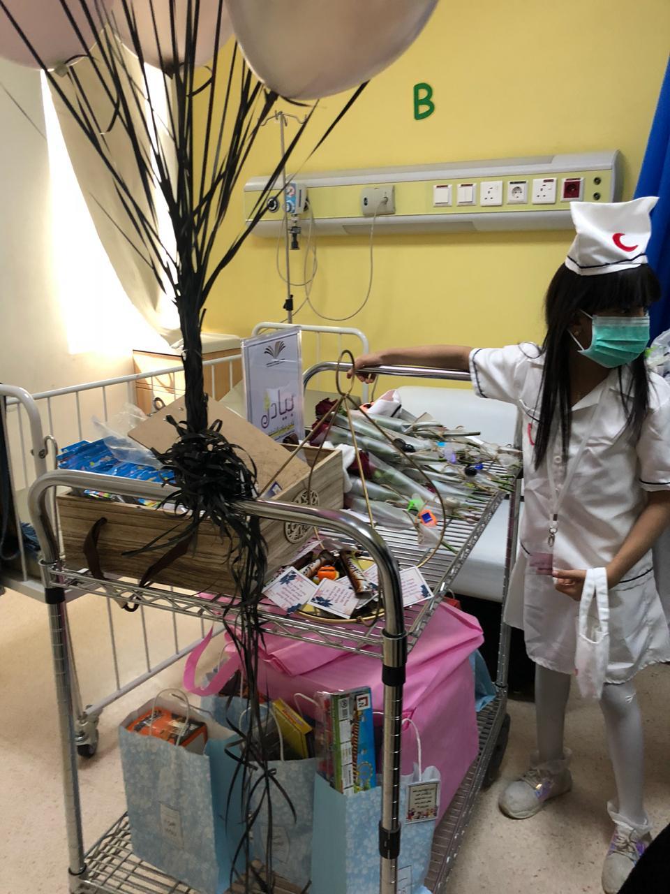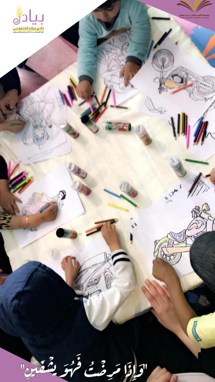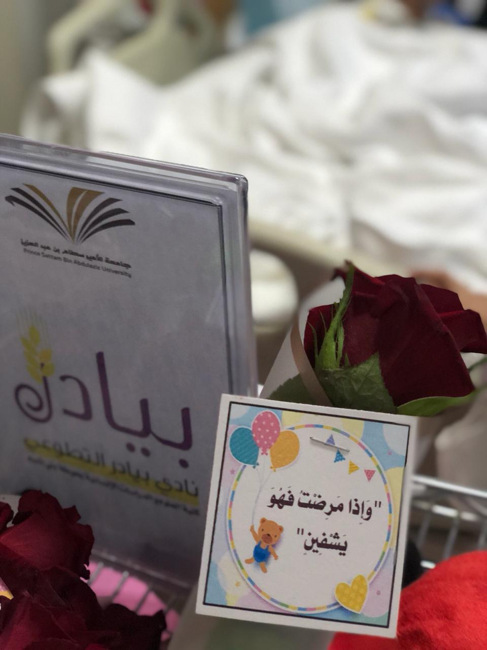 انطلاقاً من رسالة الجامعة ٢٠٣٠ و إيماناً منها بالدور الإيجابي لتعزيز الشراكة والمسؤولية الاجتماعية، وتحت قيادة عميدة كلية العلوم والدراسات الإنسانية بحوطة بني تميم د. حصة بنت سعود الهزاني نظّم نادي بيادر التطوعي بإشراف أ. لطيفه الدليمي مبادرة تطوعية بعنوان (و إذا مرضت فهو يشفين) يوم الخميس الموافق: ١٠/ ٧/ ١٤٤١هـ في مستشفى النساء والأطفال بالخرج، حيث تطوعت عضوات النادي بزيارة الأطفال المرضى في قسم التنويم لإدخال البهجة والسرور على قلوبهم ومحاولة التخفيف من معاناتهم، و كذلك تطوع الفريق بشُكر الممرضات على ما يولينه للمرضى من رعاية واهتمام كما أُقيمت نشاطات للأطفال في قسم العيادات. وقد لاقت المبادرة استحسان الزوار والطاقم الطبي وقضى الأطفال وذويهم أوقات مبهجه برفقة المتطوعات.