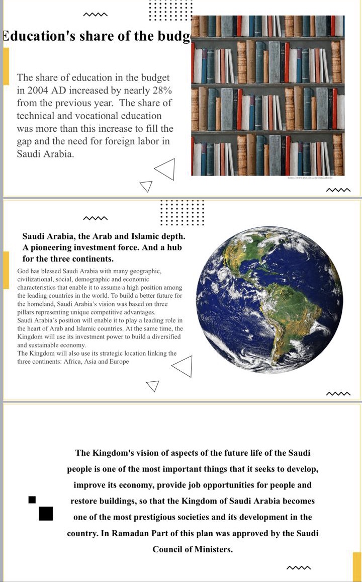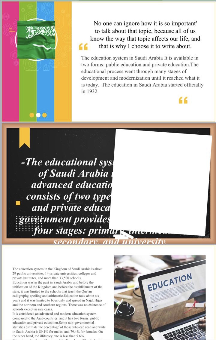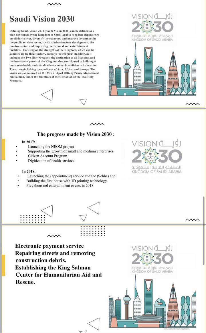 يعتبر النظام التعليمي في المملكة من الأنظمة التعليمية المتطورة والحديث، حيث قدم قسم اللغة الإنجليزية برنامج بعنوان "النظام التعليمي بالمملكة" تحت رعاية عميدة كلية العلوم والدراسات الإنسانية بحوطة بني تميم د. حصة بنت سعود الهزاني، وذلك في يوم الاثنين الموافق: 1442/8/23هـ، في تمام الساعة الرابعة مساءً عبر برنامج زووم. تناول البرنامج عرض نظام التعليم في المملكة العربية السعودية و مراحل تطوره وجهود المملكة في مجال التعليم، كما تناول أيضاً تطور التعليم في المملكة وفق رؤية 2030.