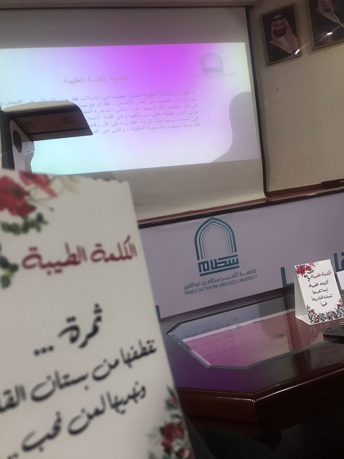 يهدف البرنامج لإبراز أهمية الكلمة الطيبة، وثمارها، وأثرها في النفوس، وحث الطالبات والحضور على التعامل بالكلمة الطيبة مع الآخرين؛ ليغنم بالنفع، ويبقى الأثر، وينال الأجر والفضل. كما تم عرض نماذج للكلمة الطيبة، وطرح ومناقشة مواقف مع الحضور لكلمة طيبة بقى أثرها في النفس، بالإضافة لإجراء مسابقة أفضل كلمة طيبة، تم ترشيح أحد الإجابات والتكريم لها، وتخلل ذلك تقديم الضيافة، وعدد من المنشورات والتوزيعات، هذا وقد نال البرنامج تفاعل واستحسان الحضور من أعضاء هيئة التدريس والإداريات والطالبات، نسأل الله أن يجعلنا من المبادرين بالكلمة الطيبة العاملين بأمر الله وسنة نبيه ﷺ.