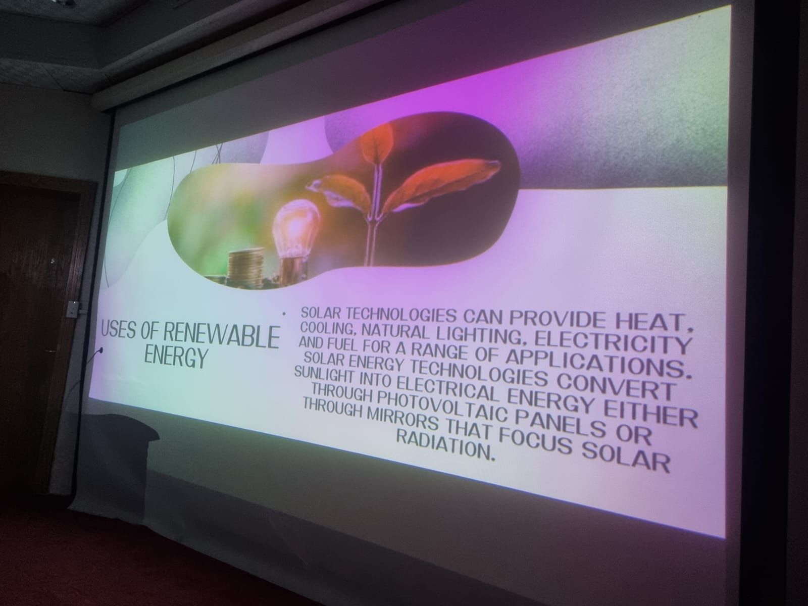 تحت رعاية عميدة كلية العلوم والدراسات الإنسانية بحوطة بني تميم الدكتورة حصة بنت سعود الهزاني أقامت طالبات نادي أصدقاء البيئة بالتعاون مع طالبات قسم الكيمياء عرضًا تحت عنوان:( الطاقة المتجددة)، وذلك في يوم الأربعاء الموافق 24-4-1445هـ في مسرح الكلية وضحوا فيه أهمية الطاقة المتجددة كمصدر نظيف للطاقة، وأهمية تطويره وتطبيقه في كافة المجالات للحفاظ علي البيئة، كما وضحوا أنواع ومصادر الطاقة المتجددة المتاحة بالمملكة العربية السعودية مثل: الطاقة الشمسية، وطاقة الرياح والمشاريع التي تعتمد وتهدف إلى انتاج هذه الطاقات المتجددة بالمملكة.