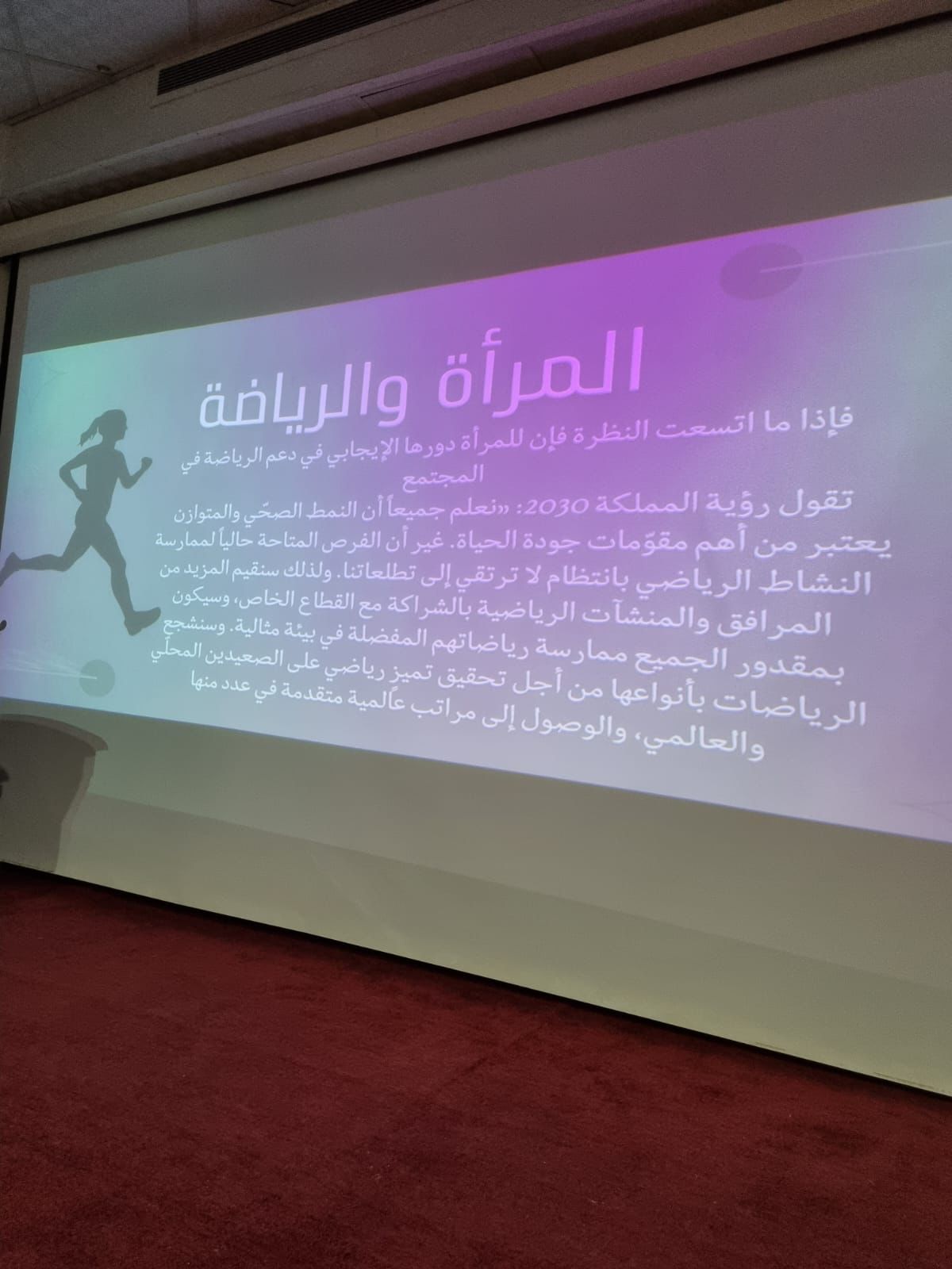 أقام النادي الرياضي في مسرح كلية العلوم والدراسات الإنسانية بحوطة بني تميم؛ برنامجًا بعنوان (لكِ أثر) تحت رعاية عميدة كلية العلوم والدراسات الإنسانية د. حصة بنت سعود الهزاني وبإشراف أ. قوت اليحيى (مشرفة النادي الرياضي في الكلية) وذلك يوم الأحد الموافق 1445/2/25هـ الساعة9:30 صباحًا.