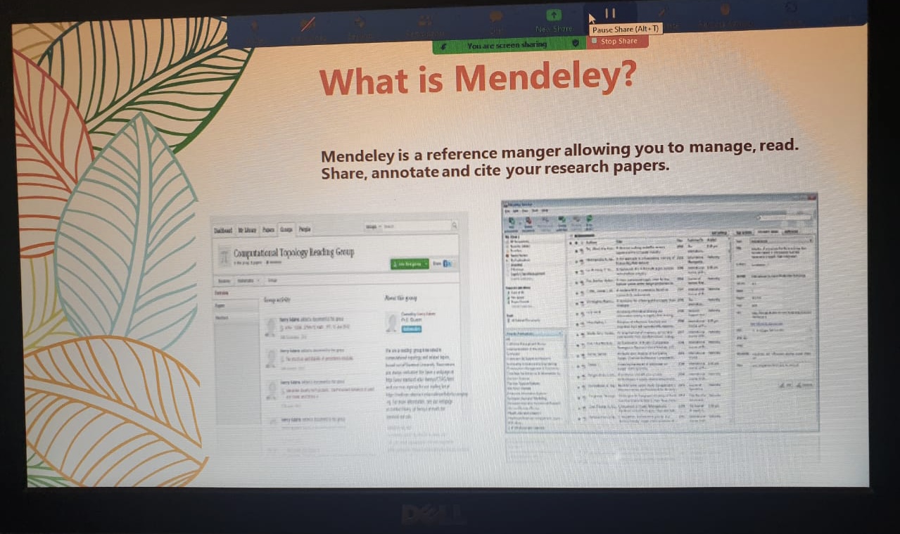 كما تم عرض كيفية الحصول على البرنامج وتحميله، وانشاء مكتبة سحابية لمراجع البحث وتنظيمها، وانشاء تزامن أي تحديثات للمراجع، وكيفية ربط التطبيق بالرسالة أو البحث وإضافة المراجع.
