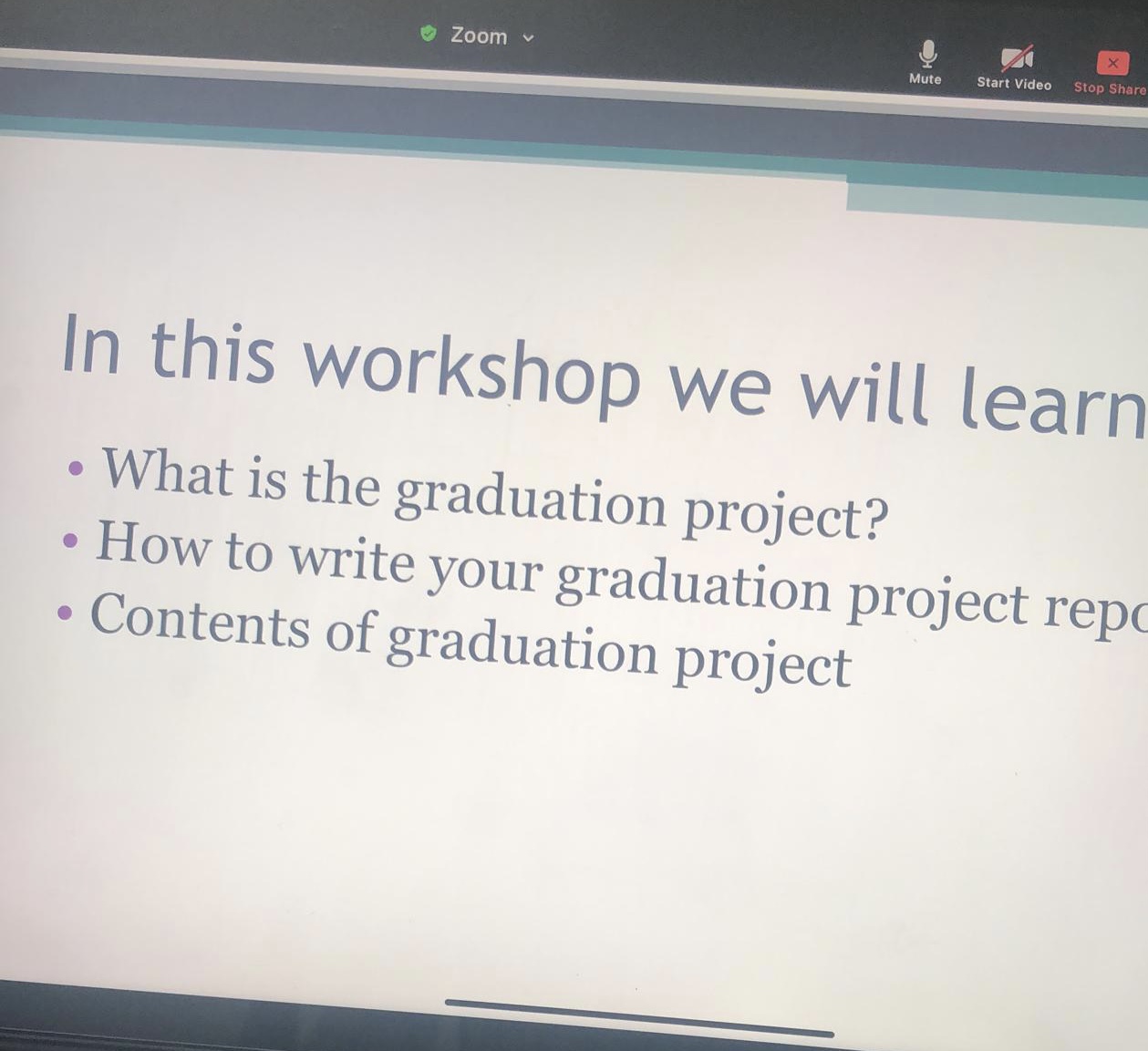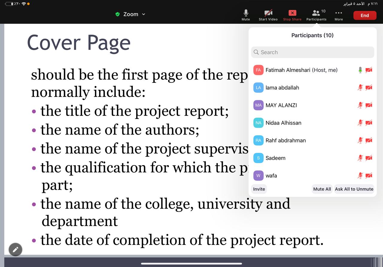 يُعد إعداد وثيقة مشروع التخرج بشكل جيد ومكتمل طبقاً للمواصفات الفنية التي يحددها القسم أحد العقبات التي تواجه الطالبات، وبرعاية رشيدة من سعادة عميدة كلية العلوم والدراسات الإنسانية بحوطة بني تميم د/ حصة بنت سعود الهزاني أقامت وحدة الخريجات ممثلة في لجنة مشاريع التخرج بإشراف د/ هبة الله الويشي دورة تدريبية بعنوان " كتابة تقرير مشروع التخرج" إعداد وتقديم: أ/ فاطمة المشاري المحاضر بقسم اللغة الإنجليزية وذلك يوم الأحد بتاريخ 1444/7/14 الموافق 5/2/2023 الساعة السابعة مساء عبر برنامج زووم. وبحضور طالبات من مختلف مستويات قسم اللغة الإنجليزية بالإضافة للطالبات المتوقع تخرجهن. بدأت الدورة بالتعريف العام بمشروع التخرج ومراحل تنفيذه، حيث تعبر وثيقة مشروع التخرج عن التقرير العلمي النهائي المكتوب الذي تحدد فيه الطالبات ما تم في المشروع من إجراءات ودراسات ونتائج، والتي يتم تقويمها من قبل اللجنة المختصة بالقسم كأحد معايير تقييم مشروع التخرج، تلاها استعراض محتويات تقرير مشروع التخرج وطريقة كتابة أجزاء وفصول البحث بداية من صفحة الغلاف إلى المراجع والملاحق، وانتهى اللقاء باستقبال أسئلة واستفسارات الطالبات والإجابة عليها.