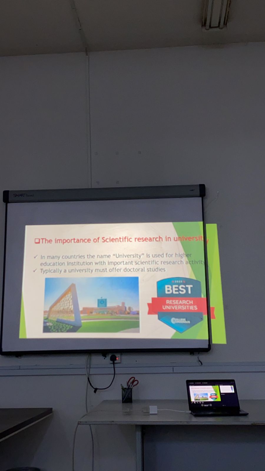 أقامت لجنة مشاريع التخرج بوحدة الخريجات بالكلية دورة تدريبية تحت عنوان " منهجية البحث العلمي وأهميته" قدمتها د/ فاتن أبو الفضل أستاذ مشارك الكيمياء العضوية لطالبات قسم الكيمياء بقاعة التدريب بالكلية يوم الأحد الموافق 1445/2/26هـ 2023/9/11 م عند الساعة الثامنة والنصف صباحاً.