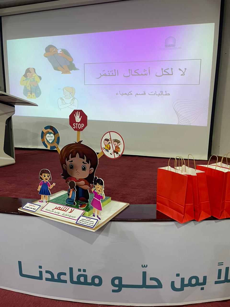 وفي نهاية الفعالية طرحت مسابقة عن التنمر، ووزعت الجوائز على الحضور. وقد حضر الفعالية عدد كبير من الطالبات ومنسوبات الكلية ولاقت استحسان الجميع.