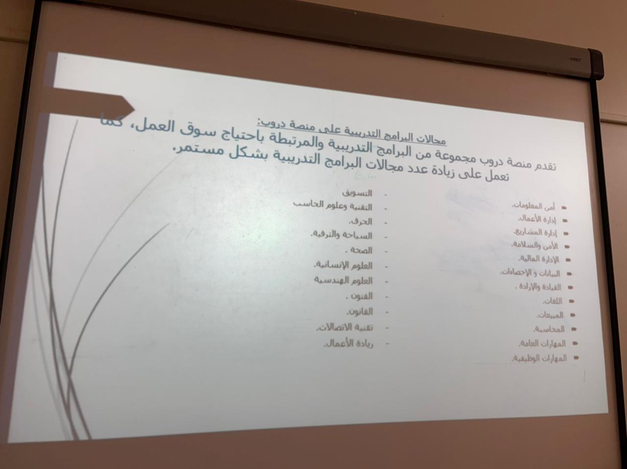 ومن أهداف اللقاء تعريف الطالبات والمتوقع تخرجهن ببرنامج دروب الذي يوفر العديد من الدورات التدريبية الإلكترونية التي تلبي الاحتياجات الوظيفية، وتهدف لإكساب المتدربين المزيد من المهارات والخبرات الجديدة.