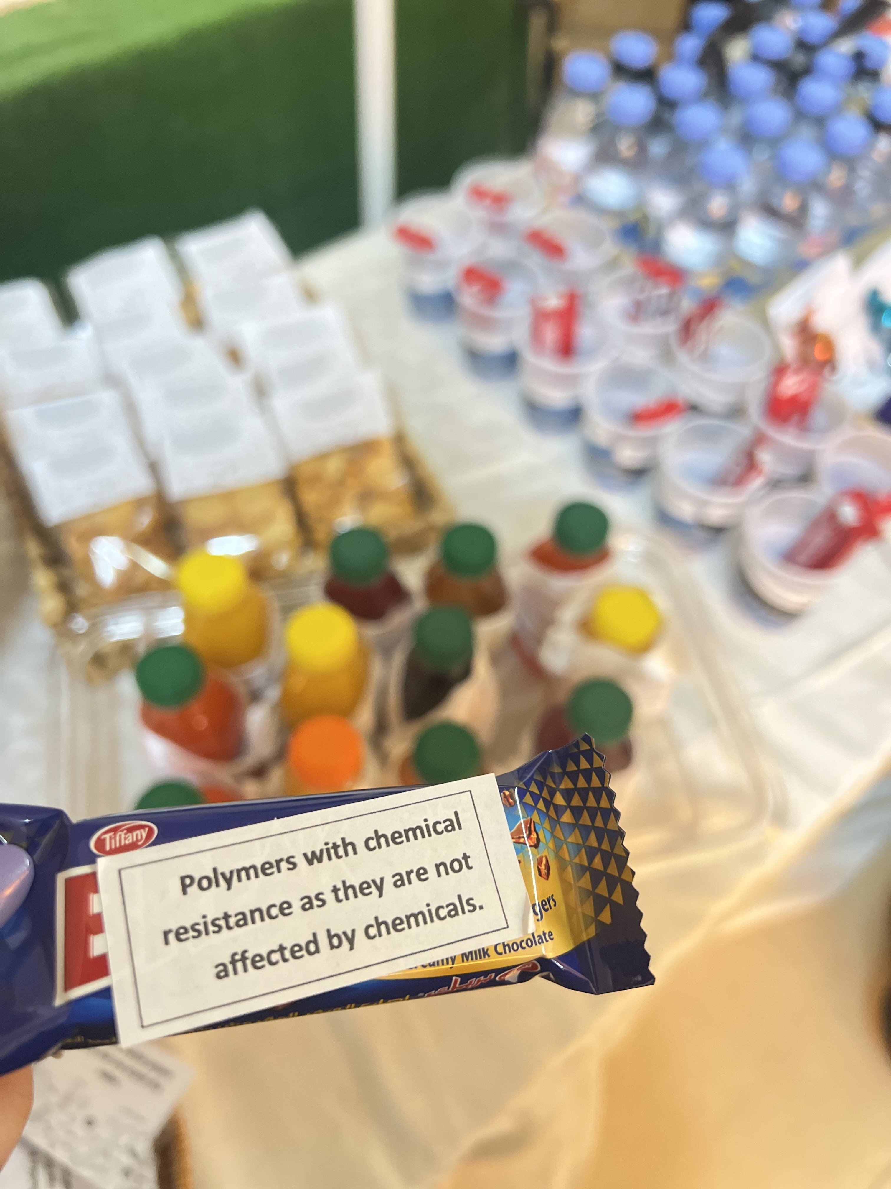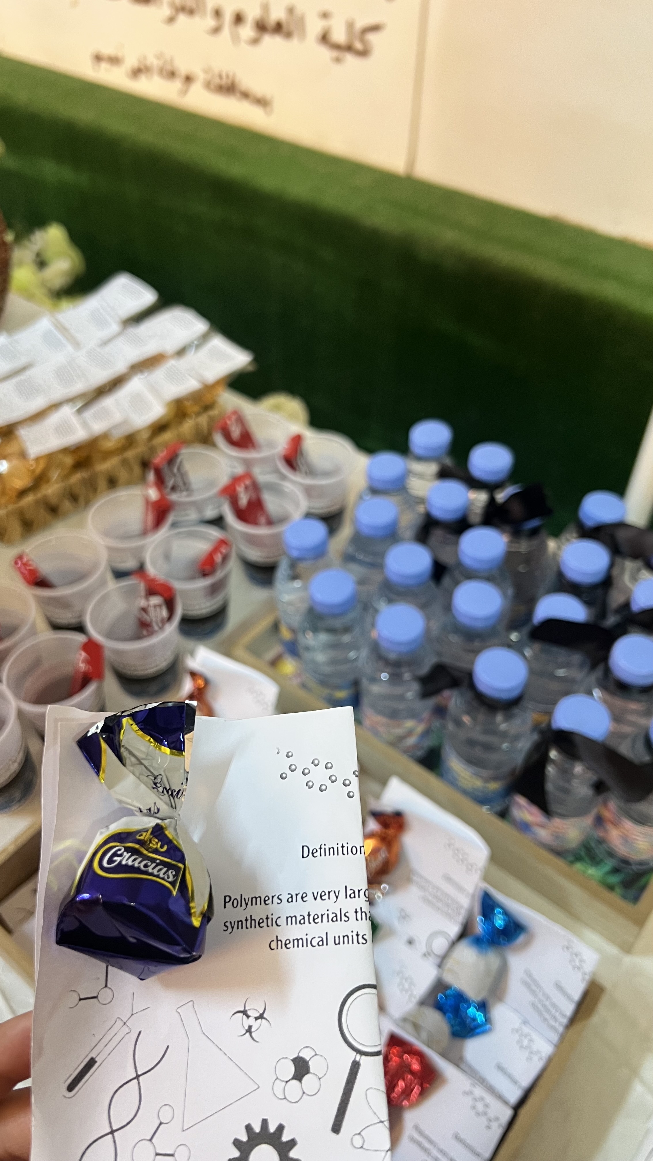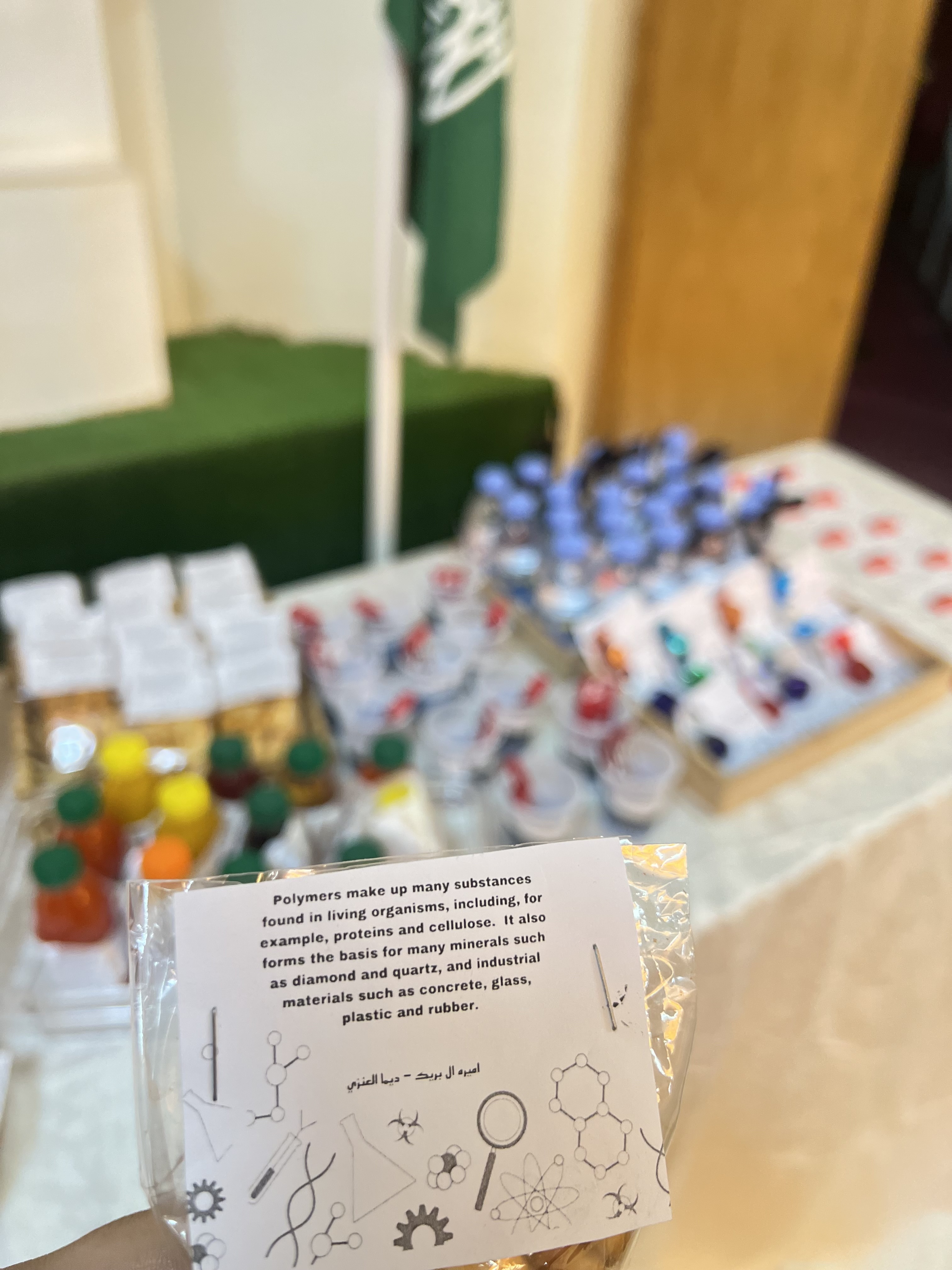 أقامت طالبات قسم الكيمياء تحت رعاية عميدة كلية العلوم والدراسات الإنسانية بحوطة بني تميم الدكتورة/ حصة بنت سعود الهزاني، ركًنا بعنوان "البوليمرات ودورها في التطور التكنولوجي" بإشراف الدكتورة فاتن إسماعيل أبوالفضل علي. وذلك في يوم الأربعاء الموافق 1444/10/13هـ.  الساعة 9:30 صباحًا في بهو الكلية.  حيث احتوى الركن على معلومات متنوعة عن البوليمرات وأهم مواصفاتها التي أدت إلى استخدامها في تطبيقات عديدة منها الطبية والصناعية وغيرها. كما تم التركيز على دور بعض أنواع البوليمرات الصناعية في التطور التكنولوجي مثل المطاط والبلاستك لما لها من أهمية ودور كبير في الطفرة الصناعية في الآونة الأخيرة.