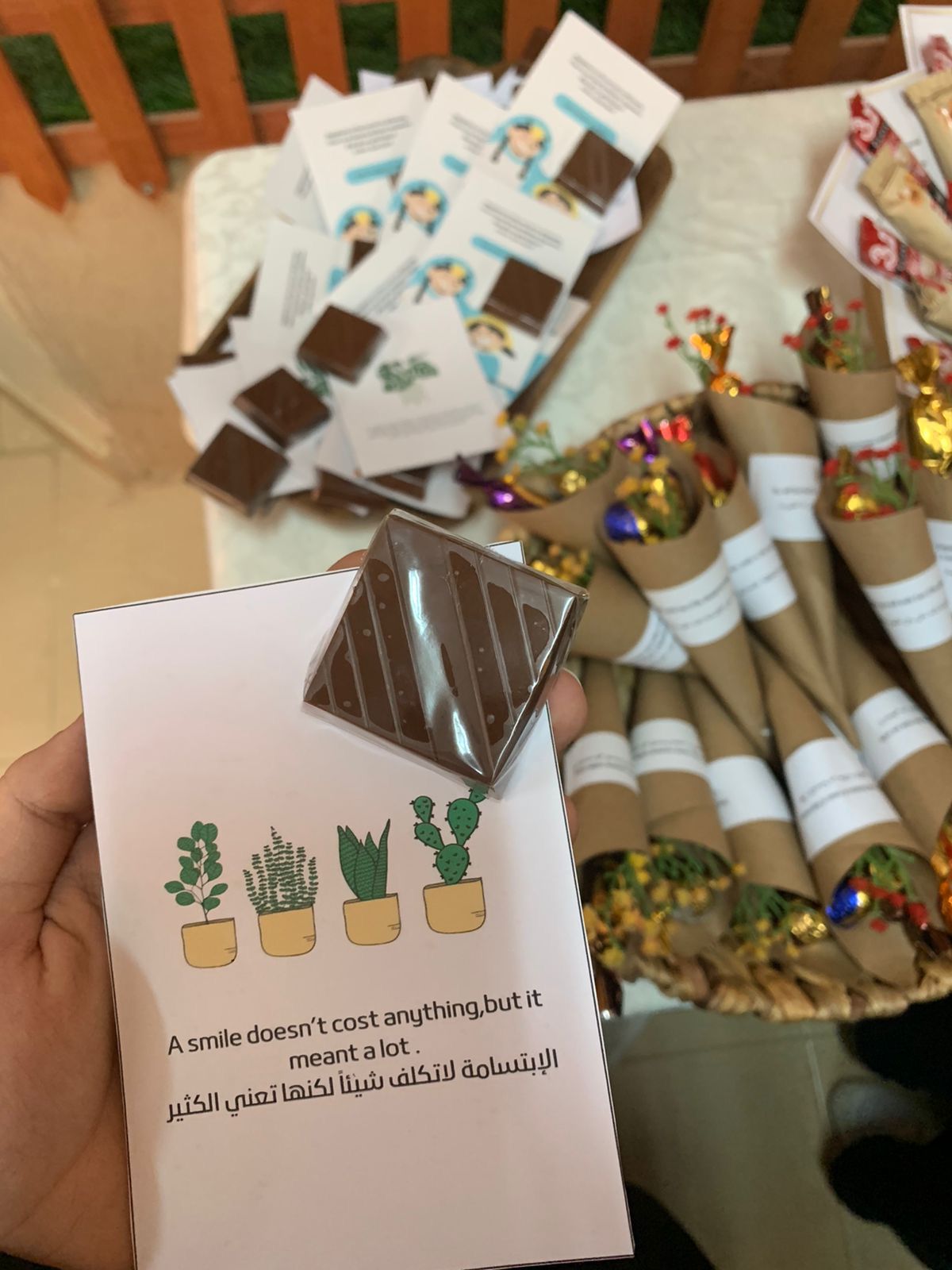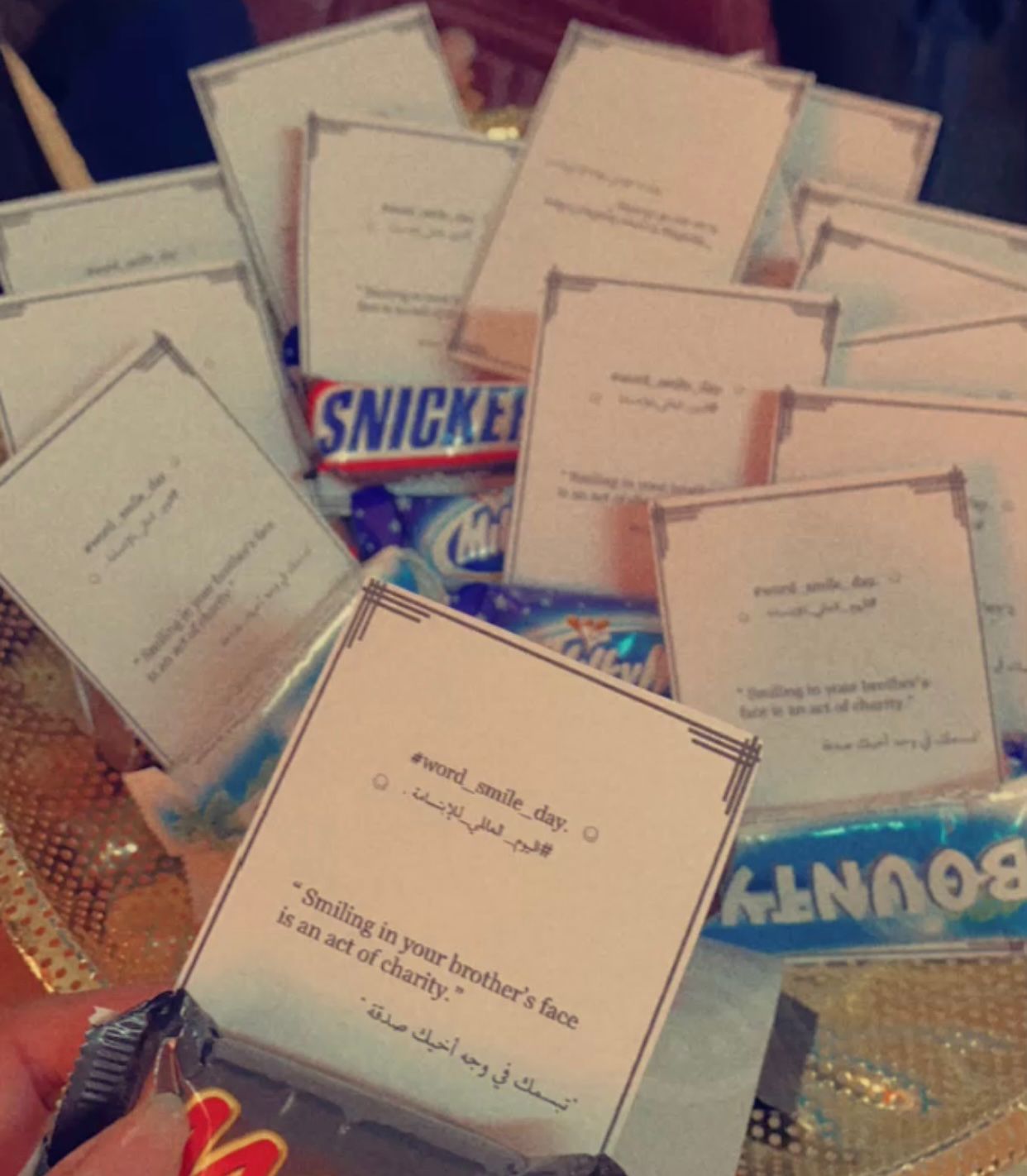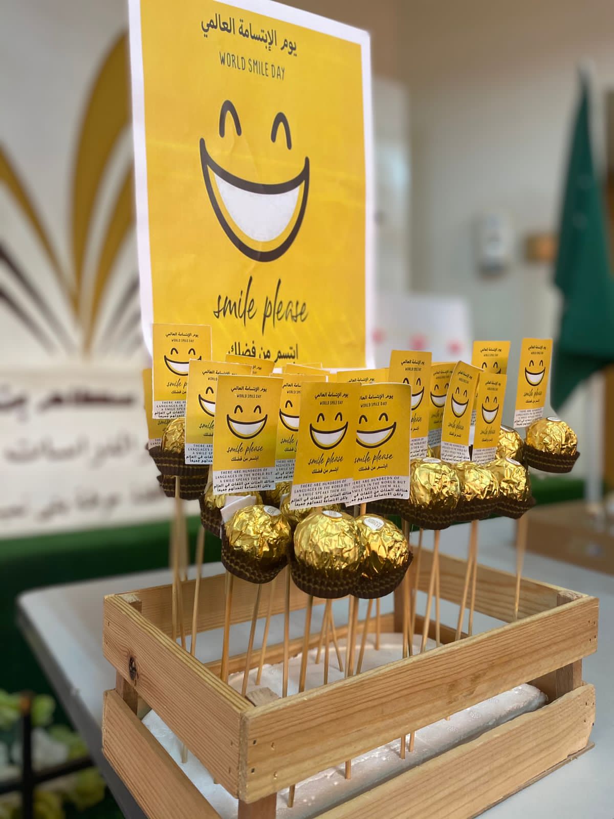 فقد شاركت مجموعة من طالبات قسم اللغة الإنجليزية في هذا النشاط بترجمة عبارات باللغة الإنجليزية واقتباسات إيجابية تحث على الابتسام، ويهدف هذا النشاط للتعريف بهذا اليوم وللتذكير بأن الابتسامة لغة عالمية يفهمها الجميع مهما اختلفت لغاتهم، وأن فوائد الابتسام جمّه، فهي صدقة في ديننا الحنيف، وتسهم اسهاماً كبيراً في أن يعيش الفرد بصحة نفسية جيّده.