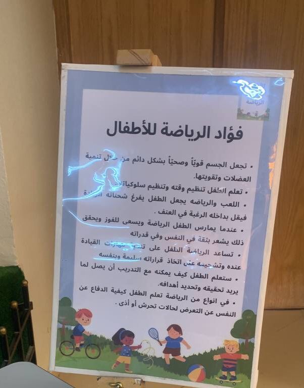 وقد ركز الركن على التعريف بأهمية الرياضة للأطفال، وفوائدها صحيًا واجتماعيًا، وتقديم نماذج لرياضات مناسبة لهم، بالإضافة إلى أفكار لاستثمار أوقات اللعب وتحويلها إلى رياضات متنوّعة من شأنها تنمية قدرة الطفل الجسديّة والعقليّة والاجتماعية، وتحسين نفسيّته بما يجعله أكثر مرونة.