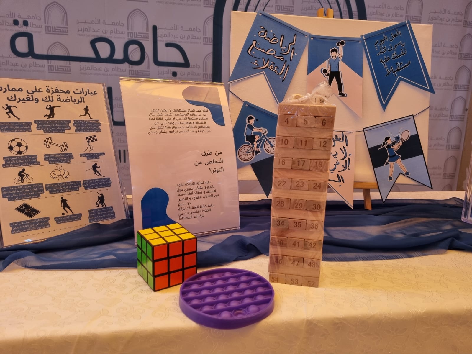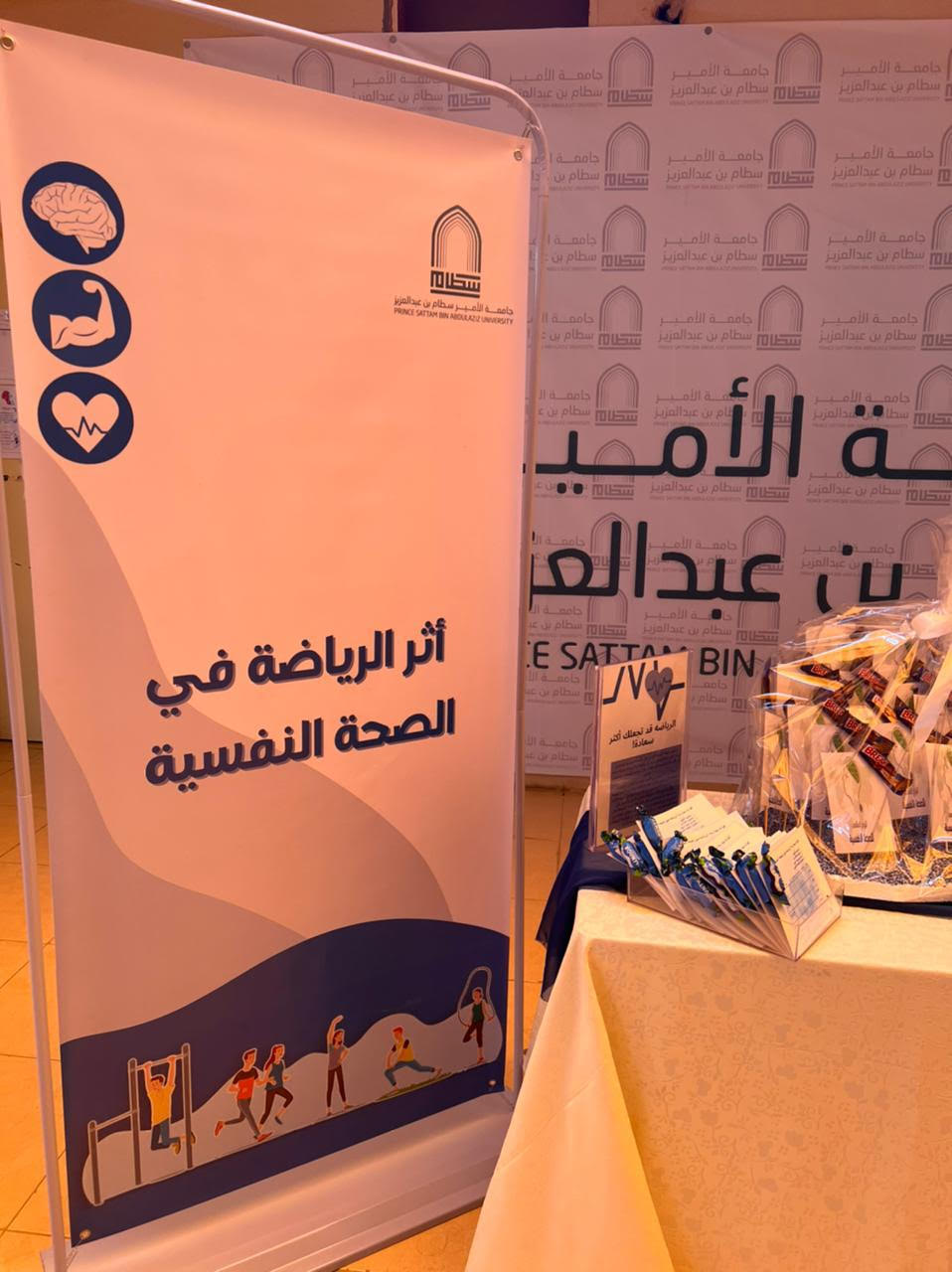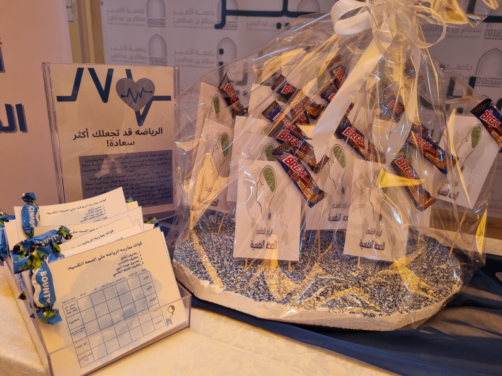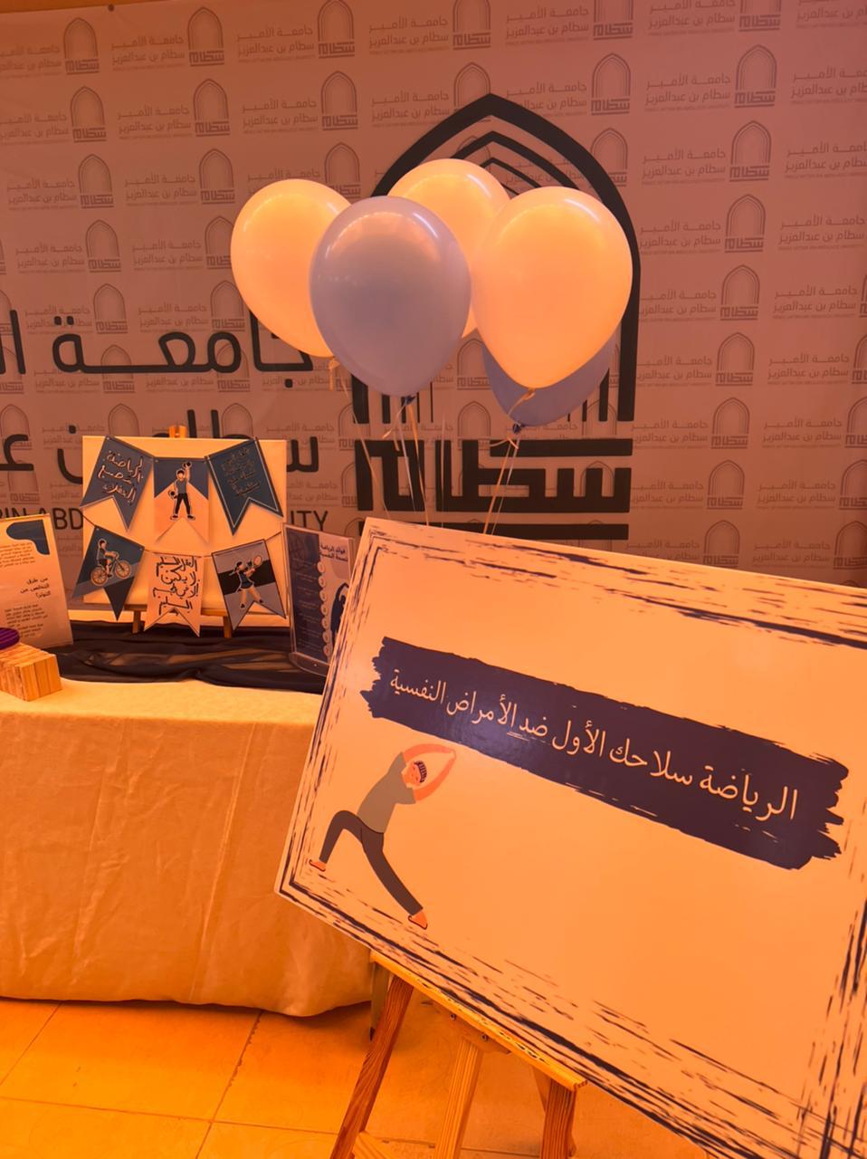 تحت رعاية عميدة كلية العلوم والدراسات الإنسانية بحوطة بني تميم سعادة الدكتورة حصة بنت سعود الهزاني. أقام النادي الرياضي ركنًا بعنوان" الرياضة والصحة النفسية " احتفاءً باليوم العالمي للصحة النفسية تحت إشراف الأستاذة/ قوت اليحيى. في يوم الثلاثاء الموافق 1445/2/27هـ في بهو الكلية، بهدف التعريف بأهمية الرياضة في صحة الفرد النفسية، واتزانه العاطفي، وبيان أثرها باعتبارها عامل مساعد وفعال في علاج بعض الأمراض والمشاكل النفسية كالقلق والاكتئاب والتوتر وغيرها، لدى جميع فئات المجتمع من أطفال ومراهقين وشباب وحتى المسنين، رجالاً كانوا أو نساءً، على اختلاف أنواعها. هذا وقد نال الركن تفاعل واستحسان الحضور.