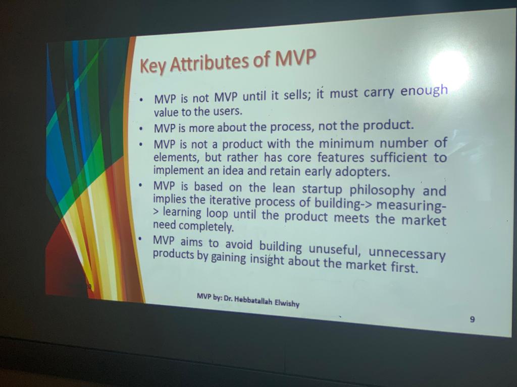 تزامناً مع انطلاق فعاليات الملتقى العلمي الطلابي و في إطار الورش التحضيرية لمحور تنمية و تنويع الاقتصاد ( مشاريع ريادة الأعمال) تحت قيادة عميدة كلية العلوم و الدراسات الإنسانية بحوطة بني تميم سعادة الفاضلة د/ حصة بنت سعود الهزاني. قدمت د/ هبة الله أحمد الويشي الأستاذ المساعد و المشرفة على قسم نظم المعلومات ورشة عمل بعنوان" إعداد النماذج الأولية المبسطة ((MVP( (Minimum Viable Product. وذلك في يوم الأثنين الموافق :1441/7/7هـ. بقاعة الاجتماعات في تمام الساعة التاسعة و النصف صباحاً، و بحضور عدد من الطالبات و الخريجات و بعض من عضوات هيئة التدريس بالكلية. بدأت الورشة بالتعريف بالنموذج الأولي المبسط للمنتج ممثلاً في منتج يحمل الحد الأدنى من المميزات قابل للاستخدام الحالي و التطوير المستقبلي يتم بناؤه بأقل تكلفة ممكنة تفادياً لبناء منتج كامل المميزات قد لا يحالفه النجاح. و قد أوضحت فلسفة بناء و بيع المنتج للعملاء من خلال عملية متكررة لتوليد الأفكار تشمل بناء النموذج الأولي، و عرضه على العملاء، جمع البيانات من خلال التغذية العكسية لآراء العملاء و تحليلها ثم التعلم لتطوير النموذج و ذلك في أقل دورة زمنية تتكرر إلى أن يحقق المنتج قبولاً لدى شريحة واسعة من العملاء او حتى يثبت فشله. كما أشارت إلى خصائص المنتج الأولي المبسط الجيد و مميزاته. كما ألقت الضوء على أهم التطبيقات الناجحة التي اعتمدت في مرحلة إطلاقها الأولي على النموذج المبسط مثل Facebook, Dropbox, Amazon and UBER، كما عرضت عدد من البرامج المستخدمة لبناء النماذج الأولية المبسطة مثل Wireframe.cc, FluidUI, Moqups, Invision Studio, Sketch and Balsamiq . و قد اختتمت الورشة بتعريف الطالبات بقطاعات محور مشاريع ريادة الأعمال و شروط المشاركة و شرح النماذج و توزيع استمارات المشاركة على الطالبات اللاتي أبدين حماس شديد للمشاركة الفعالة بالملتقى العلمي مع أطيب أمنياتي بالتوفيق.