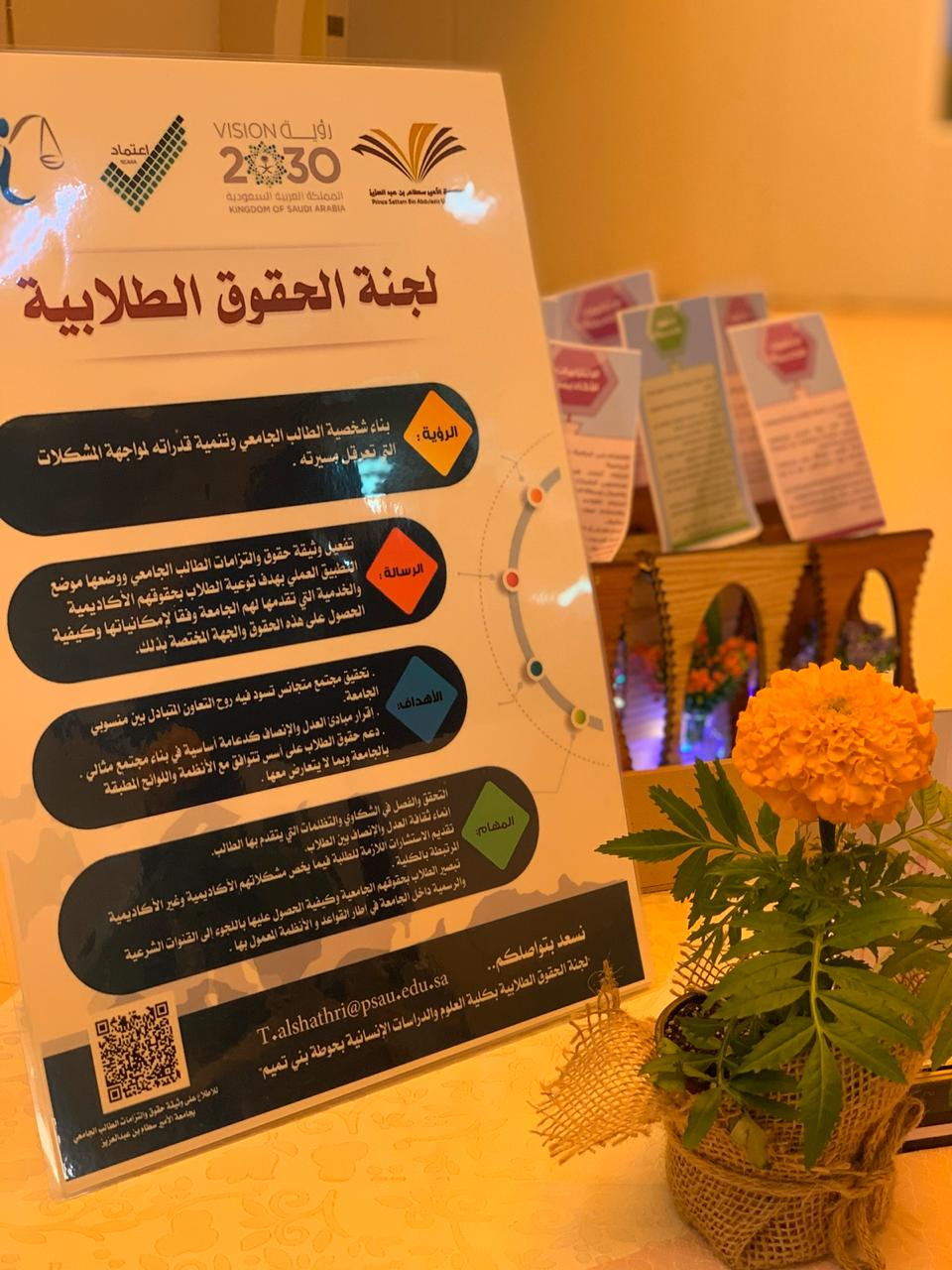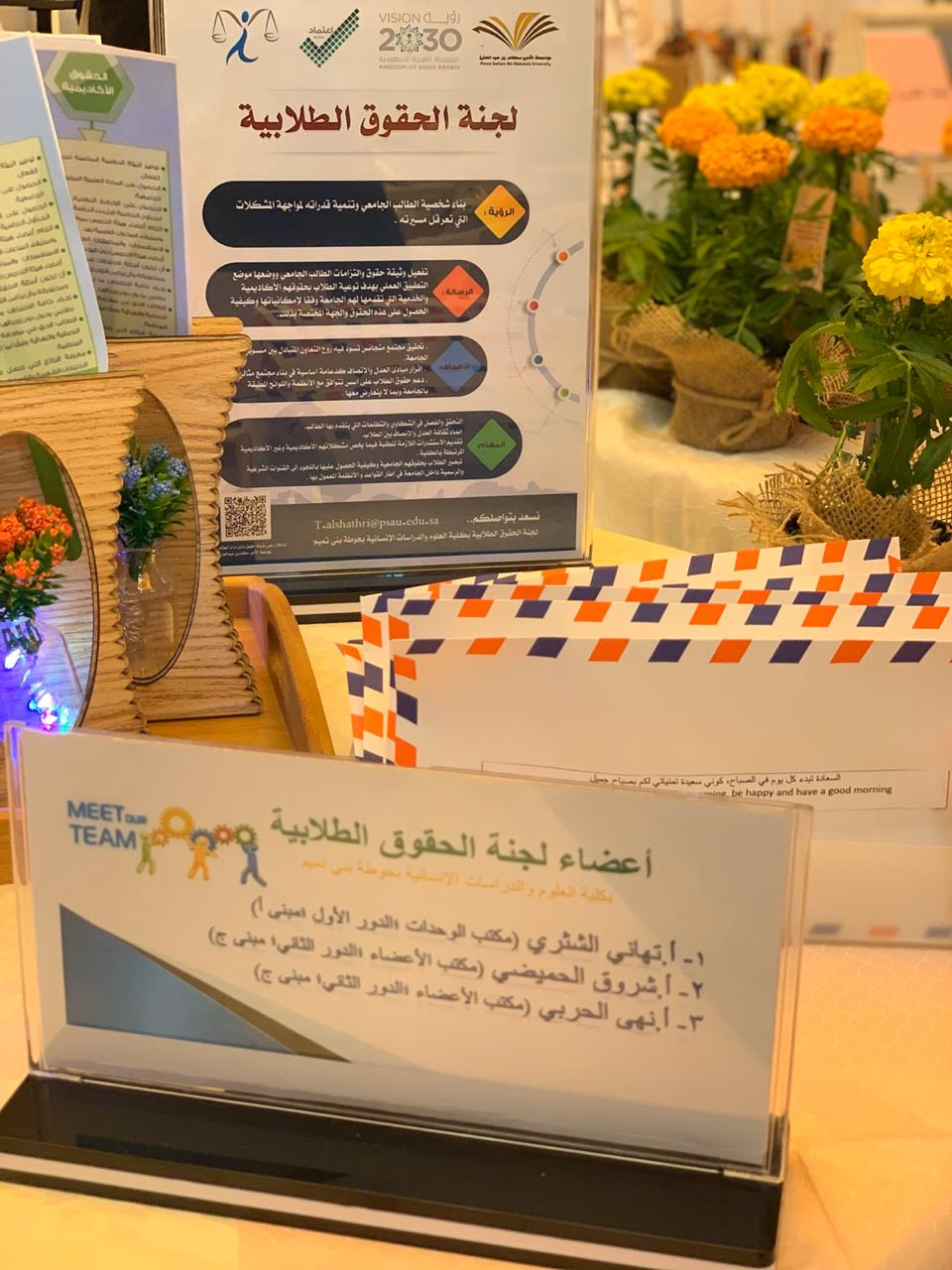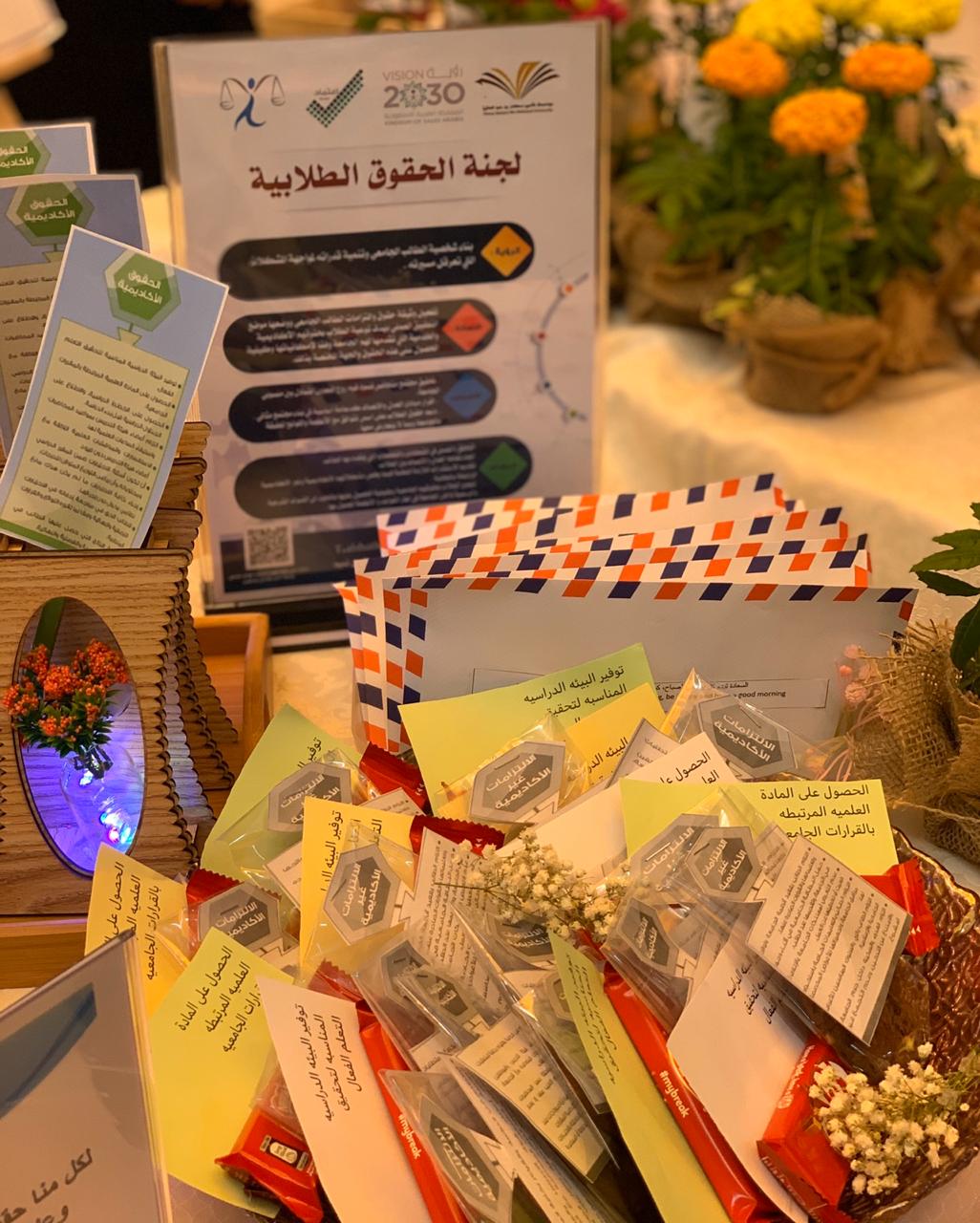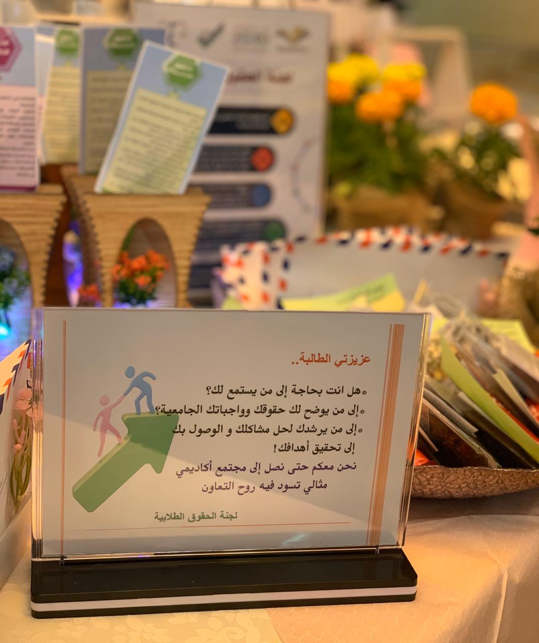 في صباح يوم الاثنين الموافق: 144/6/16هـ. أقامت لجنة الحقوق الطلابية بكلية العلوم والدراسات الإنسانية بحوطة بني تميم. تحت قيادة عميدة الكلية د/ حصة سعود الهزاني. ركناً تعريفياً في ساحة الكلية تحت شعار " نحن هنا لأداء حقوقك كأحد واجباتنا" وذلك  تحقيقا لأهداف وحدة الإرشاد الأكاديمي. للتعريف بمهام وأهداف اللجنة والإجابة عن أسئلة واستفسارات الطالبات، كذلك التعريف بأعضاء اللجنة ومقرها وطريقة التواصل. حيث أن الهدف من هذه اللجنة هو توعية الطالبة بحقوقها و واجباتها الأكاديمية وغير الأكاديمية، وبيان طرق الحصول عليها، ودعمها بما يتوافق مع أنظمة الجامعة. وزار الركن العديد من الطالبات وعضوات التدريس. حيث تضمن توزيعات متنوعة تحمل أهم حقوق وواجبات الطالب الجامعي.