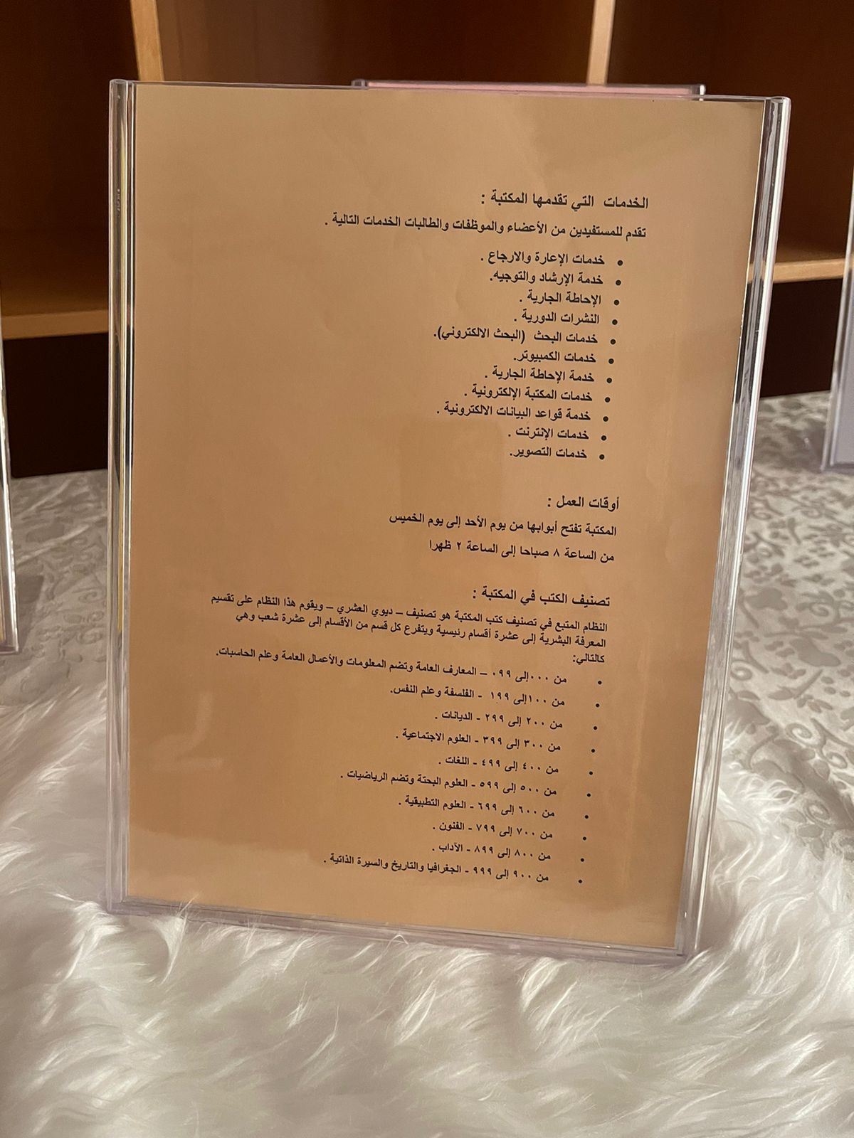 نبذة عن المكتبة – أهمية القراءة – التعريف بنظام سيمفوني – طريقة تصنيف ديوي العشري – طريقة