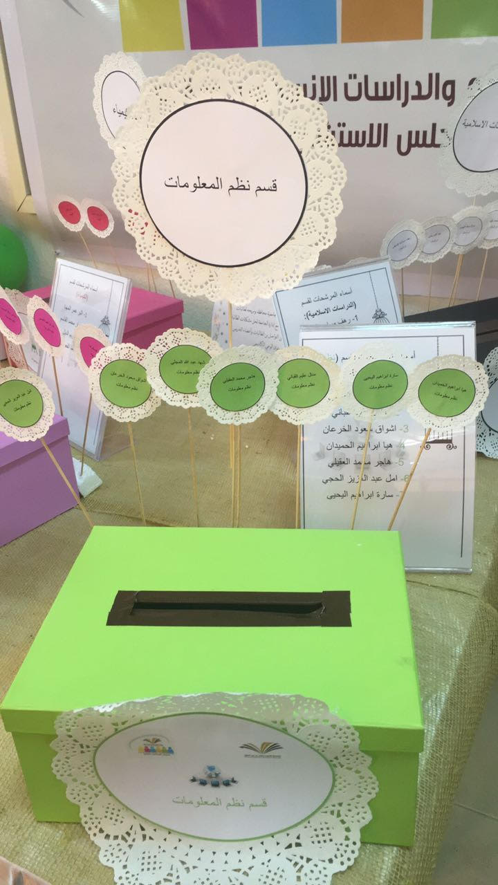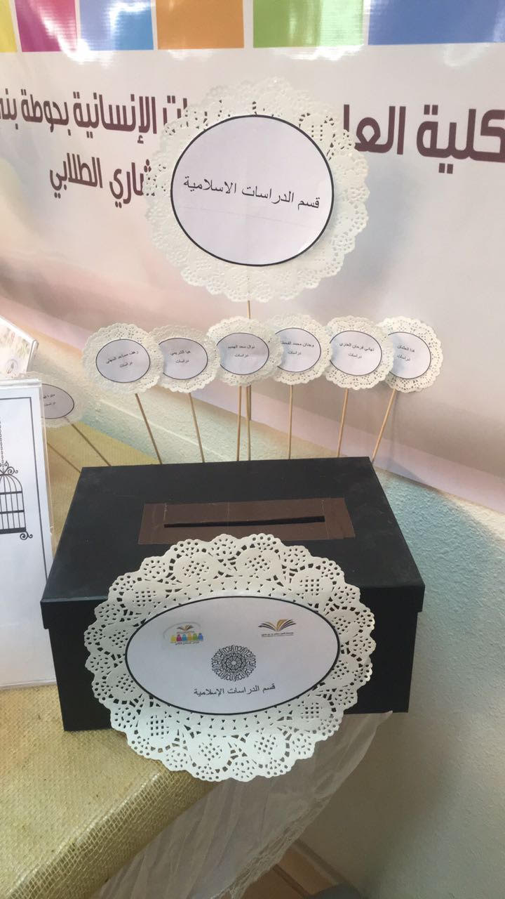 ومن قسم الدراسات الإسلامية حصلت الطالبة هيا الشريمي على 189 صوت وبناء على ذلك تم اختيارها أمينة للمجلس الطلابي الاستشاري.