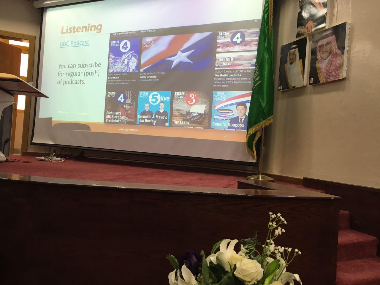 نظّم نادي اللغة الإنجليزية بكلية العلوم والدراسات الإنسانية بحوطة بني تميم سيمينار بعنوان (الإنجليزية في عصر المعلوماتية (ELL-in-ICT)) للدكتور عبدالعزيز السنوسي في مسرح الكلية يوم الأحد الموافق 6/ 2/ 1438هـ، والتي تهدف إلى توضيح أهمية تعلم اللغة الإنجليزية في عصر تقنية المعلومات والاتصالات وتسهيل عملية تعلم اللغة الإنجليزية باستخدام وسائل التقنية الحديثة بالإضافة إلى توضيح مزايا التعلم المعتمد على التقنية وعرض نماذج لوسائل تعلم اللغة الإنجليزية يمكن استخدامها لتعلم وتعليم اللغة. ثم اختتمت الفعالية بعرض أسئلة الحاضرات والإجابة عليها. يذكرأنه قد بلغ عدد الحاضرات ٢٤ من عضوات هيئة التدريس والطالبات المهتمات بمجال تعلم وتعليم اللغة الإنجليزية.