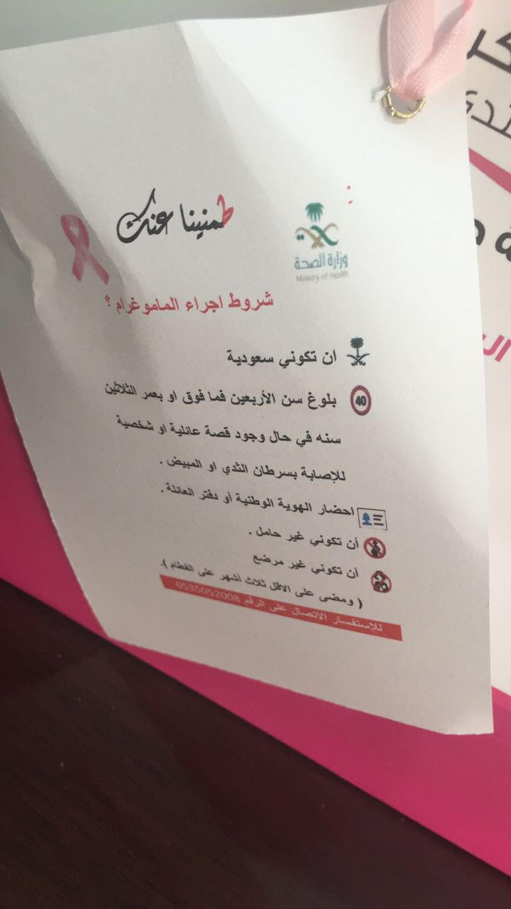 تعزيزًا للدور التوعوي قامت لجنة أصدقاء المرضى بمستشفى محافظة حوطة بني تميم العام يوم الثلاثاء الموافق ٣/ ١/ ١٤٣٨هـ بتنظيم حملة توعوية حول سرطان الثدي في كلية العلوم والدراسات الإنسانية بحوطة بني تميم تحت شعار (طمنينا عنك) بهدف توعية منسوبات وطالبات الكلية عن أهمية الكشف المبكر لسرطان الثدي، تحدثت فيها الدكتورة فاطمة عبدالرحمن كريري من إدارة المراكز بمديرية الشؤون الصحية في منطقة الرياض عن الأغذية المناسبة للحماية من المرض وأكدت على ضرورة الفحص المبكر وتوعية المجتمع بأهمية الفحص الدوري وذكرت أن الحملة تستهدف كافة السيدات في المحافظة وذلك لتوعيتهن بأحدث الطرق في الكشف المبكر ودور العوامل الجينية والوراثية كأسباب رئيسية للإصابة بسرطان الثدي ودور الإعلام في رفع مستوى التوعية لدى السيدات عن خطر الإصابة بسرطان الثدي وكيفية الاكتشاف المبكر وأثره على ارتفاع نسبة الشفاء الكامل، وأضافت الدكتورة أن سرطان الثدي هو السرطان الأول الذي يصيب السيدات وأن الكشف المبكر هو السلاح الأول للوصول إلى النتيجة المثلى من الشفاء والتي تقدر بنسبة 98 بالمائة في حين لو تأخر الاكتشاف فإن نسبة العلاج تتدني إلى نسبة 25 بالمائة بعد إرادة الله فسرطان الثدي يمثل ثلث السرطانات التي تصيب السيدات وهو الأعلى إصابة بين السيدات بقرابة 28 بالمائة.
