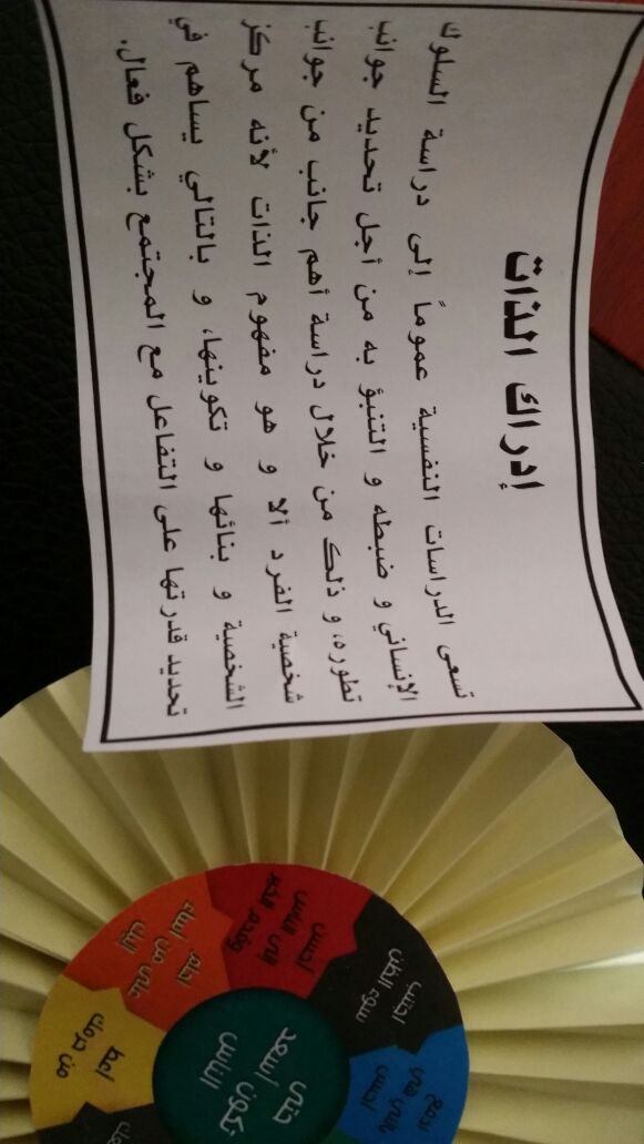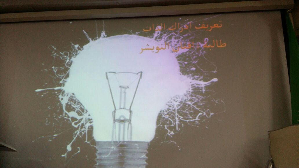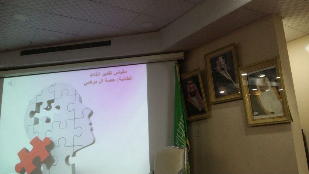 تحت رعاية عميدة كلية العلوم والدراسات الانسانية بحوطة بني تميم د.حصة بنت سعود الهزاني، أقامت وحدة الخدمة النفسية و الاجتماعية بالتعاون مع وحدة العمل الطلابي فعالية عن إدراك الذات و الارتقاء بها يوم الأحد 9 /2 /1439 هـ ،احتوى البرنامج على عرض  في المسرح بدأ بكلمة ترحيب والقرآن الكريم ثم تعريف إدراك الذات وكيف ندرك ذاتنا وتطوير الذات والمشاعر الايجابية والسلبية وعلاقتها بادراك الذات ووصايا من أجل تطوير الذات وتم توزيع مقياس تقدير الذات  خلال البرنامج  وكان هناك ركن مصاحب اشتمل على توزيعات عن مفهوم الذات وإدراك الذات وكيفية تطويرها  ، بحضور عميدة ووكيلة الكلية وبعض أعضاء هيئة التدريس وعدد من الطالبات ونال البرنامج استحسان الحضور.