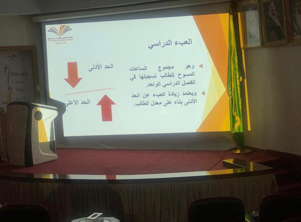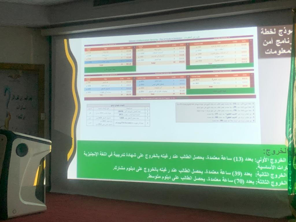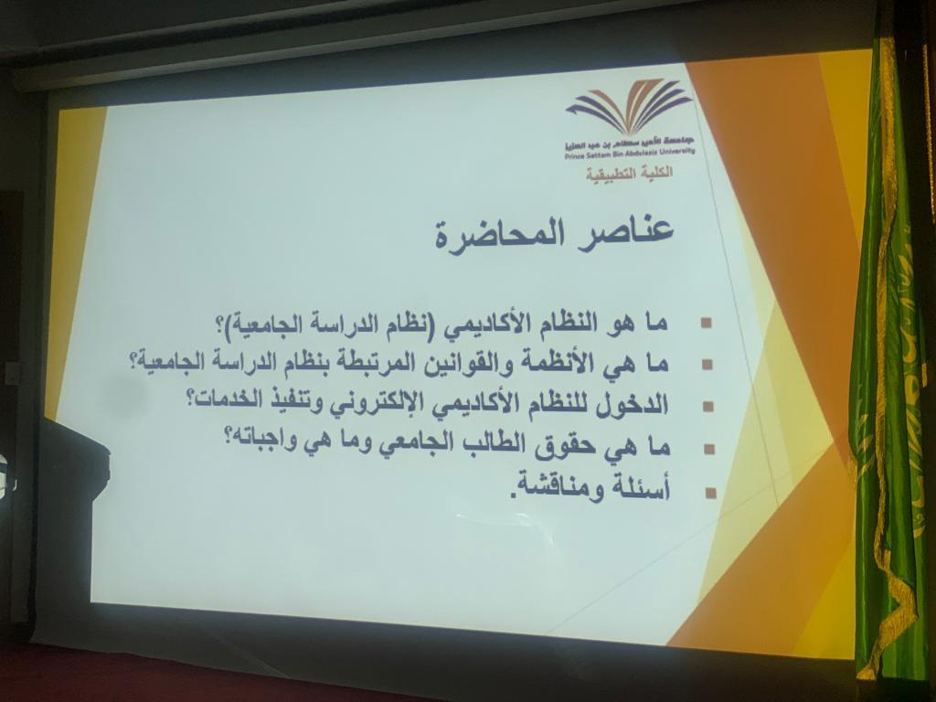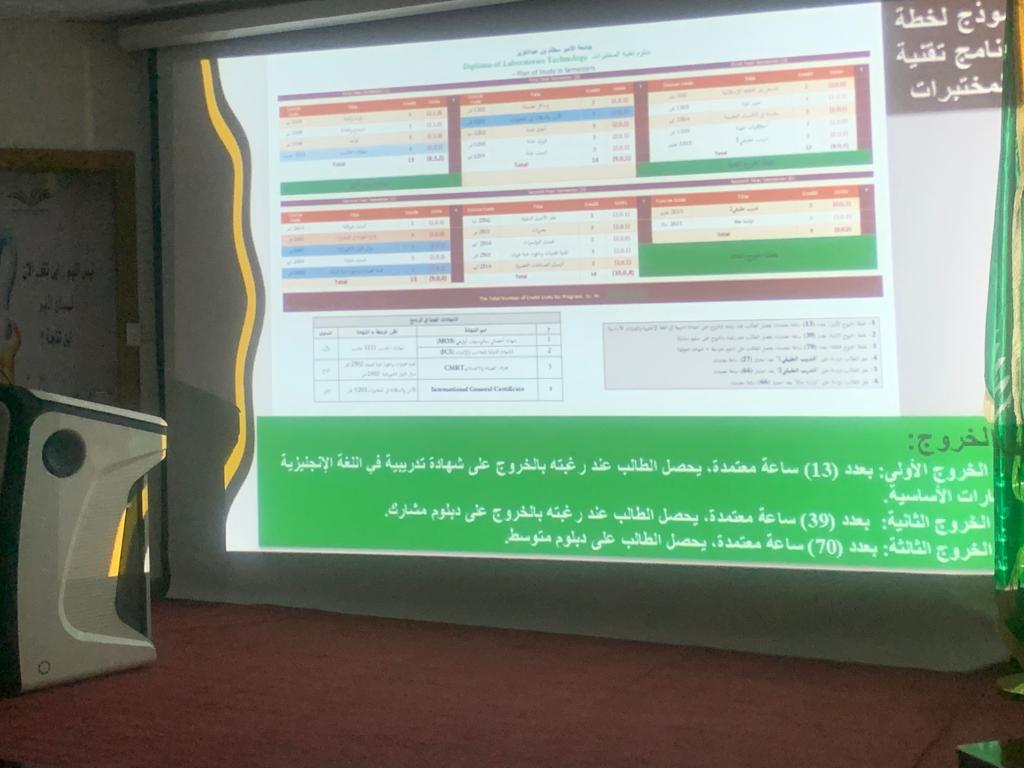 حيث بدأ البرنامج بكلمة ترحيبية من الطالبة / رغد ناصر العنزي الطالبة ببرنامج تقنية المختبرات، بعد ذلك وضحت مشرفة القبول والتسجيل بالكلية الدكتورة مي مصطفى حسن القوانين والأنظمة في الحياة الجامعية. كما عرضت منسقة برنامج تقنية المختبرات الاستاذة / باتعة عامر الجعفري المسيرة الدراسية ونقاط الخروج لبرامج الكلية، ومن جهة أخرى قامت منسقة برنامج البرمجة وعلوم الحاسب الدكتورة / هبة الله الويشي بتقديم نماذج للخطط الدراسية للبرامج الثلاث (البرمجة وعلوم الحاسب - أمن المعلومات - تقنية المختبرات).