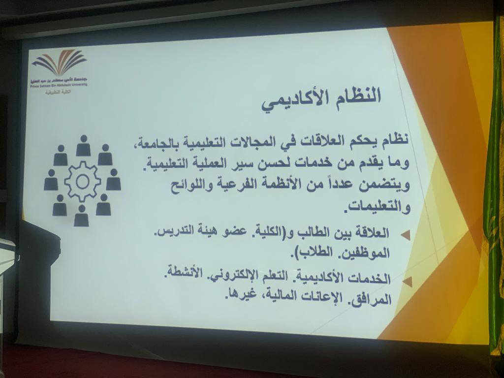 تخلل هذا اللقاء كلمات توجيهية عن ضرورة التزام الطالبات بالحضور وبكل المهام التي تقدم لهن والتقيد بأنظمة الكلية وعكس صورة إيجابية عن ذواتهن، وتشجيعهن على المشاركة في الأنشطة الطلابية.