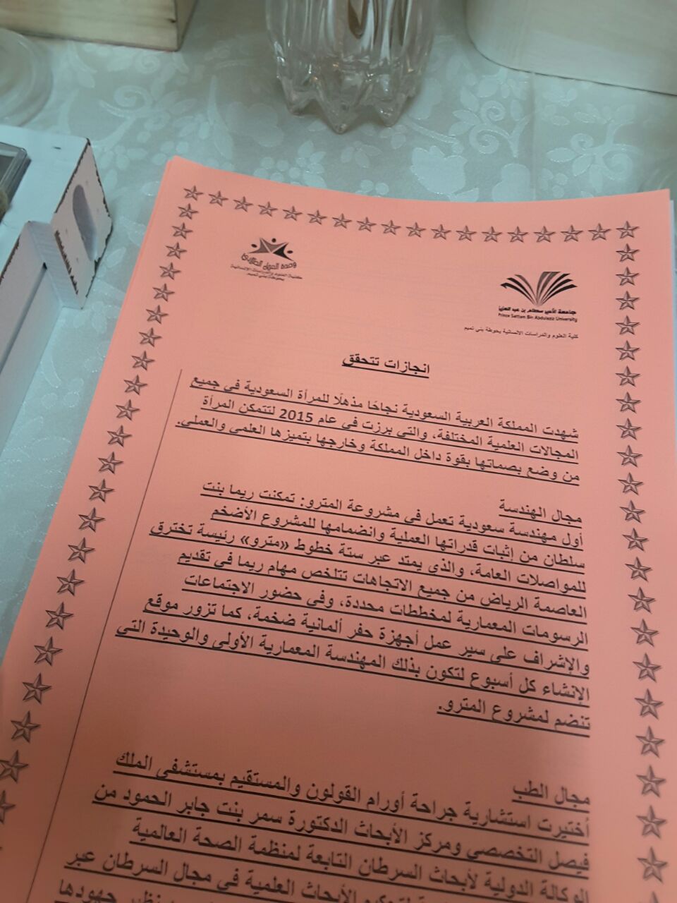 برعاية عميدة كلية العلوم والدراسات الانسانية بحوطة بني تميم وبالتعاون مع وحدة العمل الطلابي، أقام قسم القرآن الكريم والدراسات الإسلامية برنامجًا بعنوان (المرأة السعودية بين الأمس واليوم ) يوم الخميس 12 / 3 / 1439 هـ .