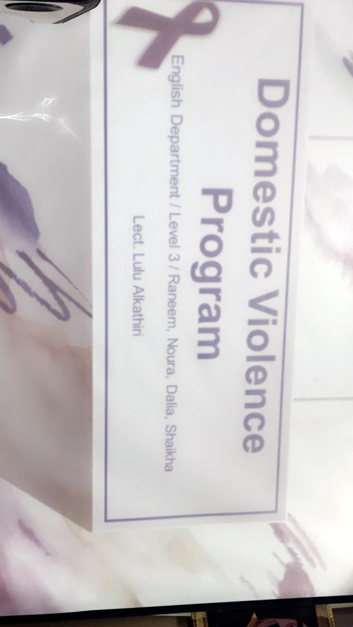 كرّست المملكة العربية السعودية جهودها في التصدي لظاهرة العنف الأسري عبر تقديم مختلف البرامج للتوعية الأسرية والدعم المعنوي؛ تفعيلاً لهذه البرامج ولرفع مستوى الوعي المجتمعي أقام نشاط قسم اللغة الإنجليزية بكلية العلوم والدراسات الإنسانية بحوطة بني تميم يوم الأثنين الموافق ٤-٣-١٤٤٠هـ فعالية بعنوان (Domestic Violence) -العنف الأسري.تهدف هذة الفعالية إلى التوعية بظاهرة العنف الأسري ، كما تم تعريف الجمهور بأنواعه وأشكاله وأسباب ازدياد هذه الظاهرة في المجتمع والمجتمعات الخارجية، كما تطرق لأهم الطرق للحد من انتشاره ووكيفيه علاجه.