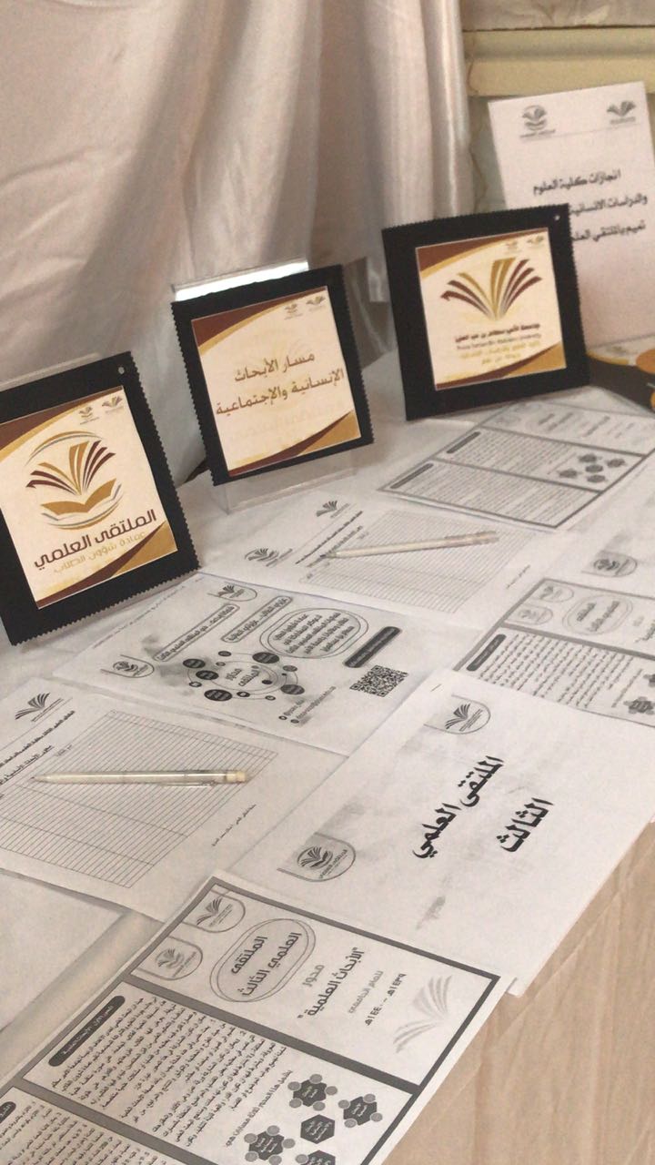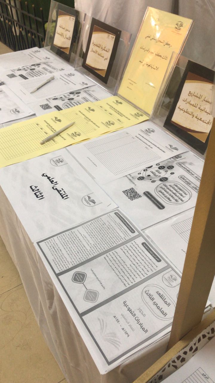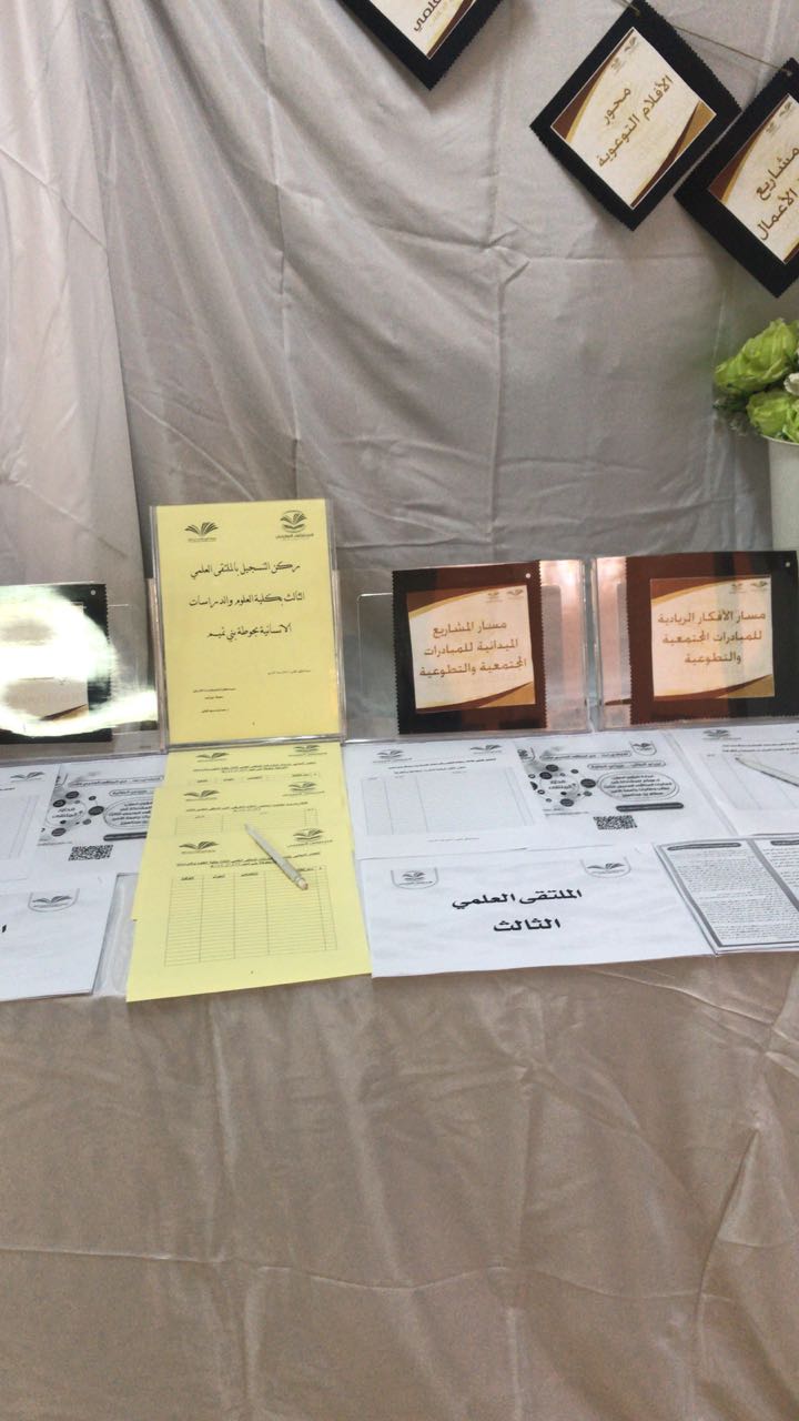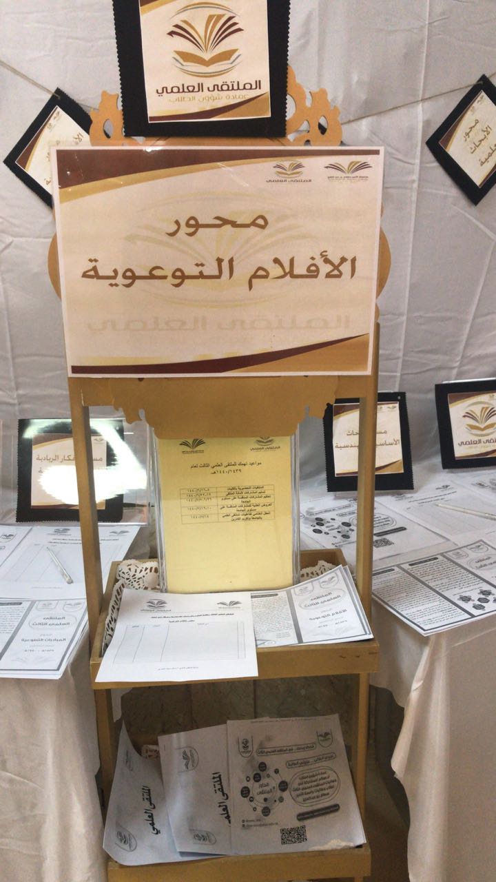 تحت رعاية عميدة كلية العلوم والدراسات الإنسانية بحوطة بني تميم الدكتورة حصة الهزاني وبإعداد منسقة الملتقى العلمي الثالث ا.اسلام العمري واللجنة التنظيمية للملتقى، تم تنظيم أركان تعريفية للملتقى العلمي الثالث في صباح يوم الاربعاء الموافق 5/4/1440 هــ  حيث تضمنت الاركان منشورات تعريفية بالملتقى ومحاوره وشروطه وضوابطه لكل محور، وكما تضمن جداول حصر مبدئي لكل محور على حدة.