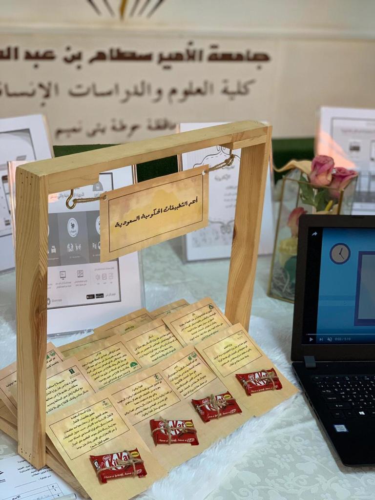 أصبحت التقنية و إجراءات المعاملات عن بعد بشتى مجالاتها في الوقت الحاضر من أساسيات الحياة اليومية لكثير من أفراد المجتمع، كما تحرص الكثير من الحكومات  على استخدام الإنترنت ووسائل التقنية الحديثة لرفع مستوى الكفاءة والفعالية للعمليات والإجراءات داخل القطاع الحكومي وذلك عن طريق تحسين مستوى الكفاءة في أداء الأعمال وتقليل الوقت المستغرق لإنهائها و تسهيل استخدام الخدمات الحكومية لحصول المستفيد على الخدمة التي يحتاج إليها وتقديم بيانات دقيقة وفي الوقت المناسب حسب الحاجة. لذلك تمت المشاركة من قبل قسم نظم المعلومات بكلية العلوم والدراسات الإنسانية بحوطة بني تميم بأركان في ساحة الكلية يوم الأربعاء الموافق ١/ 6/ 1440 هـ ، حيث تم فيها تعريف الطالبات على اهم التطبيقات الحكومية التي يحتاجها أفراد المجتمع وأهميتها لإنجاز المهام بأقل وقت وكيفية التعامل مع تلك التطبيقات وشرح بعض الخدمات الأساسية لضمان الاستفادة منها من خلال إعطاء بعض الشروحات المهمة.  كما تم عرض بعض التطبيقات المتاحة لأنظمة الهواتف الذكية على متجر التطبيقات فمن خلالها يستطيع كل  فرد في المجتمع إتمام مهامه الحكومية بأعلى كفاءة وبأقل وقت ممكن.