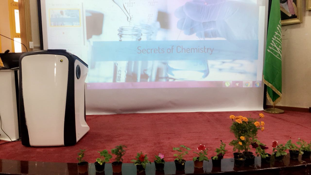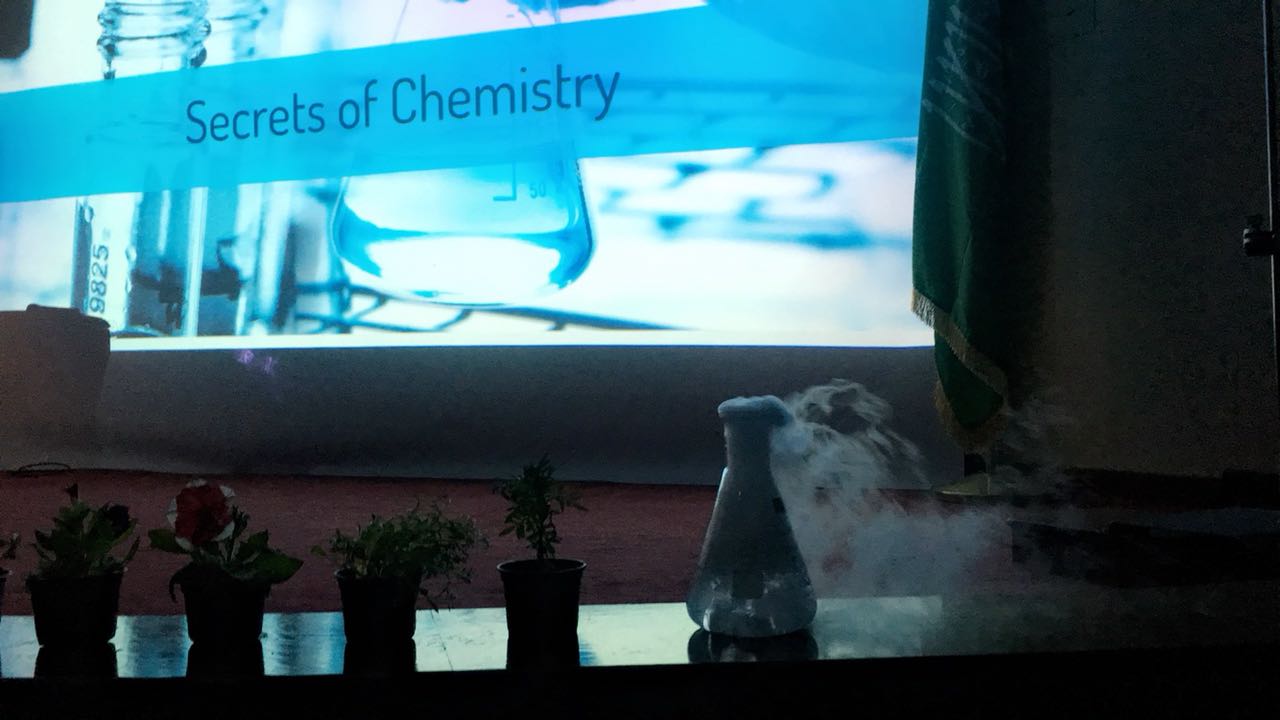 أقام قسم الكيمياء في كلية العلوم والدراسات الإنسانية بحوطة بني تميم بالتعاون مع وحده العمل الطلابي فعالية (أسرار الكيمياء) يوم الأحد الموافق 2/2/ 1439هـ في مسرح الكلية تحت رعاية عميدة الكلية الدكتورة حصة بنت سعود الهزاني ، وتطرق فيه طالبات المستوى الثالث عن كيمياء الحب والسعادة وأبرزن ذلك من خلال عدة محاور منها كيفية الشعور بالسعادة وذكر بعض الهرمونات بالجسم وطريقة افرازها لشعور بالمحبة مع عرض مقاطع فيديو وركن مصاحب للفعالية يوضح تجربة "تفاعل الثلج الجاف " وتوزيعات للحضور. كما حضر الحفل وكيلة الشؤون التعليمية والأكاديمية وأعضاء القسم والعديد من الموظفات والطالبات وقد نال اعجاب الجميع ولله الحمد شاكرين لكل من حضر والشكر موصول لطالبات قسم الكيمياء لتفاعلهم البناء.