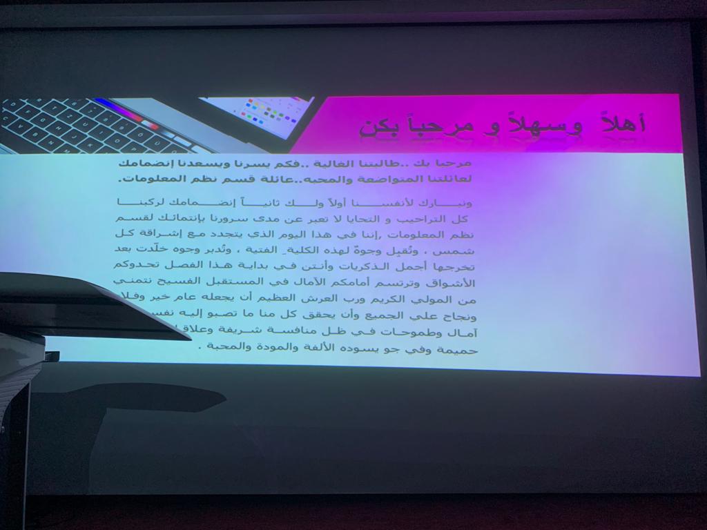 في بداية عام دراسي حافل ، وبغرض الترحيب بالطالبات المستجدات وتعرفيهن بالأقسام وبأنظمة الجامعة، قدمت كلية العلوم والدراسات الإنسانية بحوطة بني تميم برامج منوعة لاستقبال الطالبات وتهيئتهن تحت رعاية عميدة الكلية د. حصة بنت سعود الهزاني ، وبحضور رئيسات الأقسام وأعضاء هيئة التدريس والطالبات المستجدات، افتتحت هذه البرامج بتقديم قسم الكيمياء حفل استقبال المستجدات للقسم يوم الأحد : الموافق 9/ 1 / 1441هـ في مسرح الكلية، كما قدم قسم الدراسات الإسلامية اللقاء التعريفي الأول للطالبات المستجدات بقاعة (٧) بمبنى الدراسات الإسلامية عند الساعة التاسعة صباحاً من اليوم ذاته. توالت اللقاءات التعريفية تباعاً في بقية أقسام الكلية ، حيث أقام قسم نظم المعلومات اللقاء التعريفي للمستجدات يوم الأثنين: الموافق 10/ 1 / 1441هـ في مسرح الكلية، تلا ذلك قسم اللغة العربية حيث استقبل منسوباته يوم الأربعاء: الموافق 11\1\1441هـ بمسرح الكلية. ركزت هذه اللقاءات على الترحيب بالطالبات المستجدات، و تقديم نبذة سريعة عن نشأة الكلية و رسالة الأقسام ورؤاهم المختلفة ومجالات العمل للخريجات. كما تم توضيح دور الإرشاد الأكاديمي ، وكیفیة الاستعانة بالمرشد الأكاديمي وخطة الدراسة لكل قسم، وأهمية الجودة ومشاركة الطالبة في تقییم العملية التعليمية. تخلل هذه اللقاءات كلمات توجيهية لرئيسات الأقسام عن ضرورة التزام الطالبات بالحضور وبكل المهام التي تقدم لهن ، والتقيد بأنظمة الكلية وعكس صورة إيجابية عن ذواتهن، وتشجيعهن على المشاركة في الأنشطة الطلابية. وفي الإطار ذاته، أقامت وحدتا العمل الطلابي و الإرشاد الأكاديمي لقاءات تعريفية مع الطالبات المستجدات بمسرح الكلية، هدفت اللقاءات التعريف بهذه الوحدات واللجان التابعة لها وأهمية كل لجنة وما تقدمه للطالبات ، حيث تكلمت رئيسة الإرشاد الأكاديمي عن أهم القضايا الأكاديمية التي تهم الطالبات ، وتناولت حقوق الطالبة وواجباتها وكل ما يخص الحياة الطلابية. كما تم التعريف بلجنتي الخدمة النفسية والاجتماعية والخدمات التي تقدمها اللجنة للطالبات والعمل على تحقيق الاستقرار النفسي والاجتماعي لهن. اختتمت هذه اللقاءات بشكر الجميع على الحضور ، والمشاركة بحوار مفتوح لاستقبال الأسئلة من الطالبات ولقاءات تعارف للمستجدات بأعضاء هيئة التدريس بالأقسام ، وتوزيع الأدلة الإرشادية الخاصة بكل قسم ودليل الإرشاد الأكاديمي.