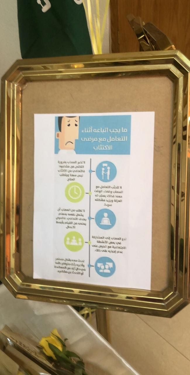 الاكتئاب هو مشكلة نفسية ومرض يؤثر على الجسم والمزاج والأفكار وطريقة تناول الطعام والنوم، ويؤثر على مشاعر الشخص تجاه نفسه ومن حوله ويؤثر على أفكاره، ولا يمكن للأشخاص الذين يعانون من الاكتئاب أن يتم علاجهم بدون مضادات الاكتئاب أو علاج نفسي، ويمكن أن يستمر علاجه لعدة أسابيع أو شهور أو سنوات حسب حالة كل شخص. لبيان أعراض وخطورة هذا المرض النفسي وتحت رعاية عميدة كلية العلوم والدراسات الإنسانية بحوطة بني تميم د/حصة بنت سعود الهزاني أقامت وحدة الخدمة المجتمعية قسم الرياضيات (أثر الاكتئاب على الجهاز المناعي) يوم الخميس الموافق 7/7/ 1440 هـ الساعة الحادية عشر صباحا في ساحة الكلية. تم خلال البرنامج التعرف على أهم الامراض النفسية ومنها الاكتئاب الذي يسبب خلل في أداء الجهاز المناعي وايضا دور الخوف والتوتر والانفعال في العديد من الامراض المزمنة مثل الضغط والسكر التي تؤدي بدورها الى ضعف مناعة الجسم. كما تم خلال البرنامج التحفيز على التفكير الإيجابي والحث على تذكر مواقف الفرح والنجاح وتعداد النعم الي تبعد الاكتئاب والابتعاد عن لحظات الحزن والفشل.