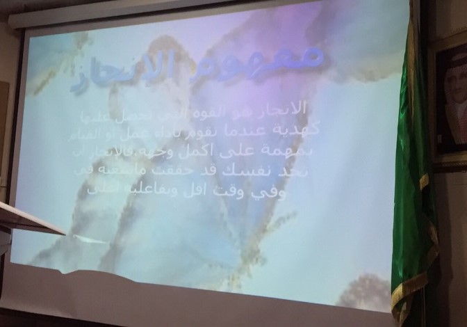 نفذ قسم اللغة الإنجليزية بكلية العلوم والدراسات الإنسانية بحوطة بني تميم يوم الخميس الموافق 26 /5 /1438هـ برنامجًا بعنوان (هل تريد أن تصبح ذا إنجاز؟) بمسرح الكلية، تهدف الفعالية إلى تحفيز الأفراد نحو الإنجاز والإبداع وأن لا يقف الفرد عند العقبات في طريقه للوصول إلى ما يصبو إليه كما تهدف إلى الحث على تحديد الأهداف وأن تقيِّم الخطوات ليرى الفرد أين هو من هدفه الذي يرمي إلى تحقيقه وتحريك الفرد وتوجيهه نحو طموحاته إلى جانب عرض بعض الشخصيات المنجزة كأمثلة يقتدون بها بالإضافة إلى تشجيع الأفراد نحو التفوق والاعتزاز بقدراتهم و إحترامهم لذاتهم. كما تم خلال الفعالية العرض التقديمي الذي تضمن العديد من الفديوهات والصور والأناشيد المختارة. وأيضا اشتمل على ركن خاص ساهم في نشر التوعية بأهمية الإنجاز من خلال ما يحتويه من منشورات وعبارات وصفحات.