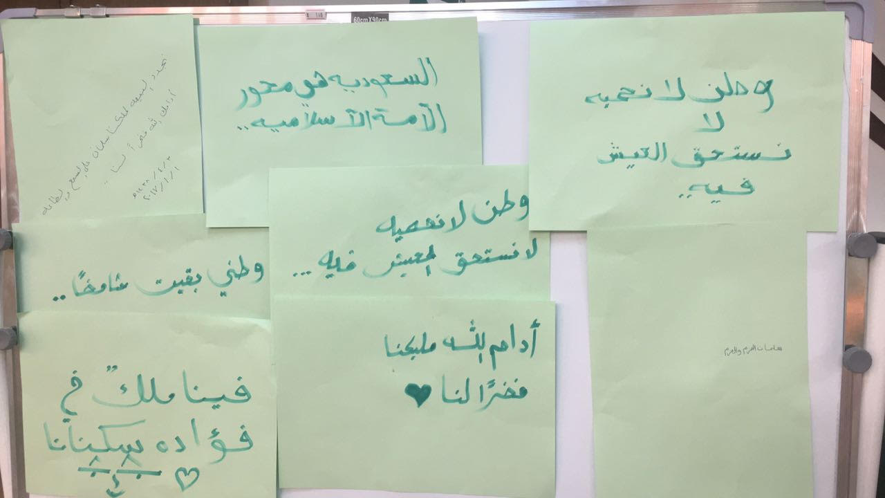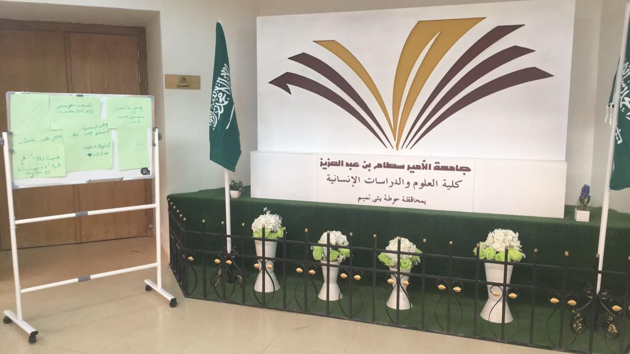 أقامت وحدة العمل الطلابي بكلية العلوم والدراسات الإنسانية بحوطة بني تميم برنامجًا عن ذكرى البيعة الثانية لخادم الحرمين الشريفين الملك سلمان بن عبدالعزيز حفظه الله وذلك يوم الأحد الموافق ٣ /٤ /١٤٣٨هـ في تمام الساعة ١٠:٣٠ صباحًا في مسرح الكلية. بدأ البرنامج بالسلام الملكي السعودي بعد ذلك آيات من الذكر الحكيم، ثم نبذة عن ملك الإنسانية الملك سلمان بن عبدالعزيز مولده ونشأته كما عُرض أوبريت عن مبايعة الملك سلمان وتحدثت أ. منال الدحيم عن الأمن والأمان في المملكة العربية السعودية وكيف أن بعض الدول الإسلامية المجاورة تفتقد لهذه النعمة العظيمة مثل أخواننا المستضعفين في سوريا والدعاء لهم بالنصرة والفرج القريب. كما تمت إقامة مسابقات عن المملكة والحكم وقدمت بعض الهدايا، وقد لاقى البرنامج قبولا في نفوس وقلوب المحبين للوطن وكلنا كذلك. يُذكر حرص عميدة الكلية د. حصة الهزاني واهتمامها بمثل هذه المواسم. كما عبرت أخواتنا الأستاذات من الجاليات وكذلك الطالبات عن حبهن لهذا الوطن بمشاعرهن والمبايعة بالسمع والطاعة لولاة الأمر، أيضًا خطت بعض الطالبات والمنسوبات عبارات جميلة للوطن في لوحة وضعت خارج المسرح. واختتم البرنامج بتجديد البيعة والولاء للمليك وللوطن حفظ الله المملكة العربية السعودية من كل سوء ودمت شامخًا يا وطني.