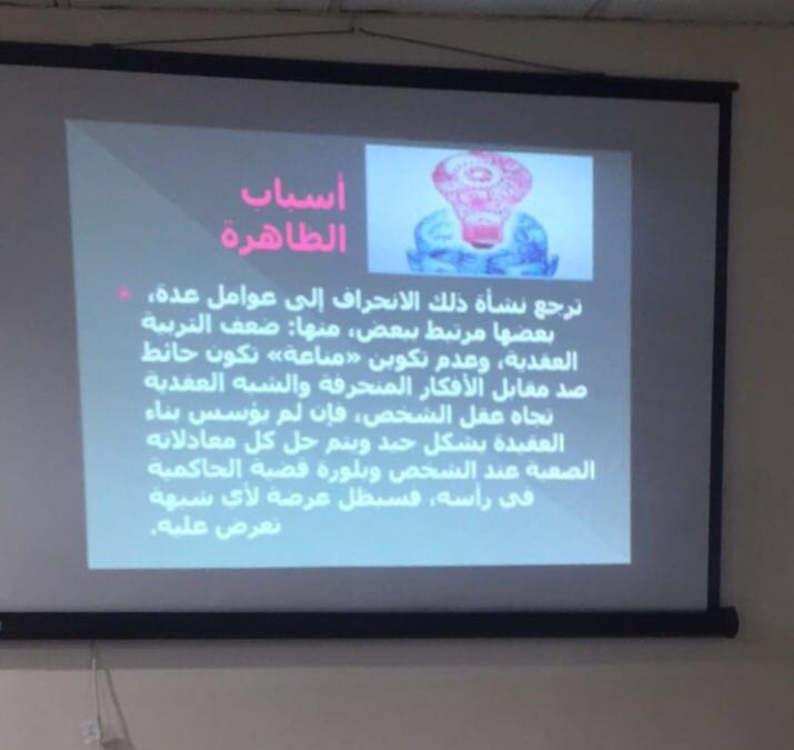 استكمالاً لتحضيرات الملتقى العلمي الثاني، أقامت لجنة الخدمة المجتمعية تحت مظلة كلية العلوم والدراسات الإنسانية بحوطة بني تميم وبالتعاون مع المكتب التعاوني للدعوة والإرشاد وتوعية الجاليات القسم النسائي بحوطة بني تميم دورة بعنوان (تعزيز دور المرأة والأسرة في مناهضة التطرف الفكري). حضرت الدورة سعادة عميدة الكلية الدكتورة حصة بنت سعود الهزاني وكانت من تقديم طالبات الكلية هياء الشريمي وآلاء الحماده وجواهر الشبانات وبإشراف عضوات هيئة التدريس بكلية الحوطة د. أميرة صالح ود. عديلة حسين، وذلك يومي الثلاثاء والأربعاء الموافق 13- 14 / 5 / 1439 هـ من الساعة ٦ إلى ٨ مساء في قاعة المكتب. هدفت الدورة إلى توضيح دور الأسرة في تعزيز الأمن الفكري من خلال تطبيق برنامج إرشادي كما هدفت تعزيز القيم الدينية والأفكار الوسطية في الأسرة، توعية المرأة بدورها في تعزيز الأمن الفكري، اشعار المرأة بدورها في حمايتها لأسرتها من الغزو الفكري، إلمام المرأة بمضامين الغزو الفكري ووسائله. تم خلال الدورة نقاش عدة محاور ومن أبرزها) مفهوم الأمن الفكري، وسائل الغزو الفكري، كيف نحمي أبنائنا من الغزو الفكري، دور المرأة في تعزيز الأمن الفكري، والآثار المترتبة على الأمن الفكري). وفي ختام الدورة شكرت الأستاذة فوزية الجمعة مديرة القسم النسائي القائمات على الدورة والمتدربات لجهودهم وتفاعلهم الملموس.