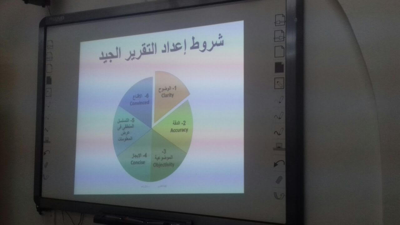 امتدادًا لسلسة الدورات التدريبية المقامة بكلية العلوم والدراسات الإنسانية بحوطة بني تميم ضمن برنامج تنمية مهارات القيادات الأكاديمية وأعضاء الهيئة التدريسية للعام الجامعي 1437/ 1438هـ (المرحلة الثانية)، أقامت وكالة الجامعة للشؤون التعليمية والأكاديمية ممثلة في الوحدة الإشرافية على كليات البنات دورة تدريبية بعنوان (كتابة التقارير) للدكتورة منال زاهد أستاذ مساعد ومدرب معتمد بجامعة الأمير سطام وذلك يوم الثلاثاء الموافق 1 /6 /1438هـ. تهدف الدورة إلى إكساب المتدربات المعلومات اللازمة لتمكينهن من إعداد التقارير وقد تناولت الدورة عدد من المحاور منها: ماهي التقارير وماأهميتها في العمل الجامعي، وكيف تعبر التقارير عن حجم الجهد المبذول في العمل، إلى جانب الفرق بين التقرير والمذكرة ومكونات التقرير ومراحل إعداده بالإضافة إلى الأخطاء الشائعة في كتابة التقارير وأنواع التقارير وكيفية إعداد كل نوع، بعد ذلك أوضحت الدكتورة شروط إعداد التقرير الجيد وأشكال التقارير وطريقة تصميمه وإخراجه. وقد بلغ عدد الحاضرات 36 من عميدة الكلية ووكيلاتها ورئيسات الأقسام والوحدات، وقد تم تزويدهن بالحقيبة التدريبية كما تم خلال الدورة تطبيق بعض التدريبات والأنشطة، هذا وقد تم إرسال التقييم بعد الدورة.