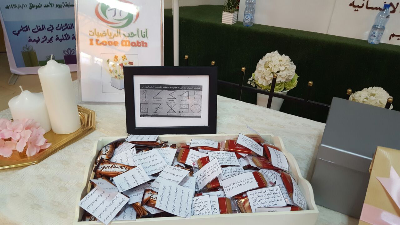 قدّم قسم الرياضيات بكلية العلوم والدراسات الإنسانية بحوطة بني تميم وذلك يوم الأربعاء الموافق 15 /7 /1438هـ بإشراف د.أم السعد فعالية (العلوم المسلية) وهي عبارة عن أركان تم تقديم مسابقات رياضية وألعاب ذكاء وبعض التجارب العلمية الخفيفة وذلك بهدف ربط العلم بالترفية وإبراز الجانب المسلي لبعض العلوم. هذا وقد لاقى البرنامج تفاعل كبير من الطالبات اللاتي استمتعن بألعاب الذكاء والمسابقات.
