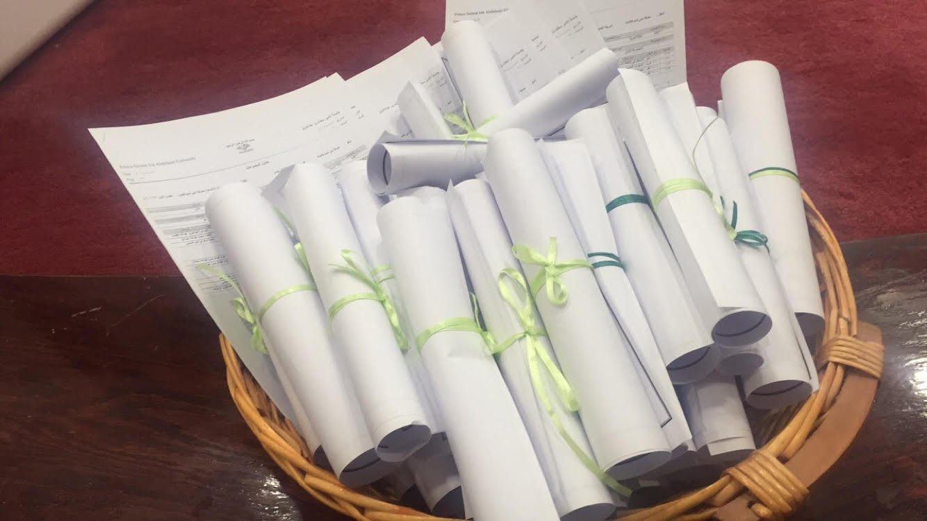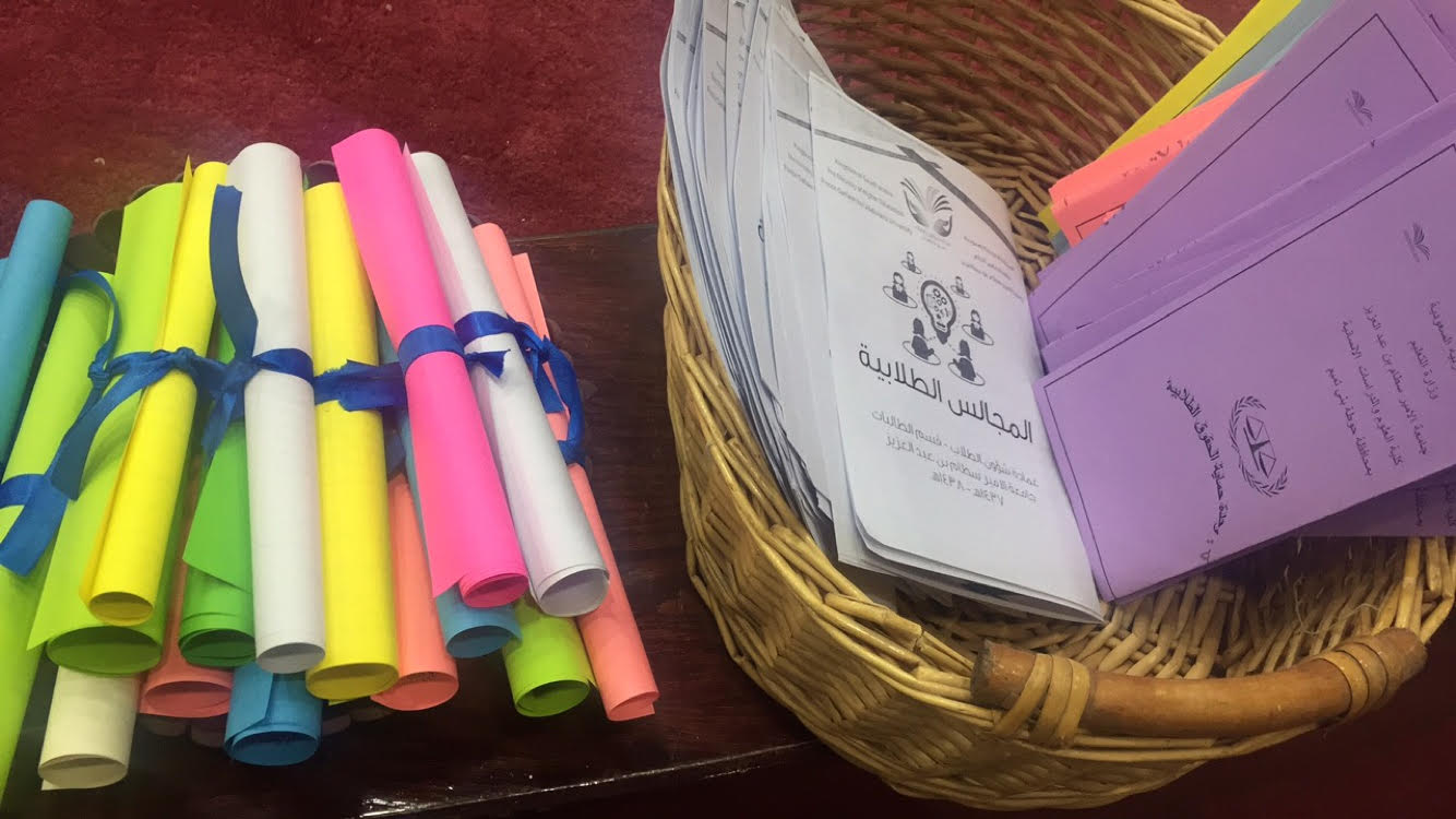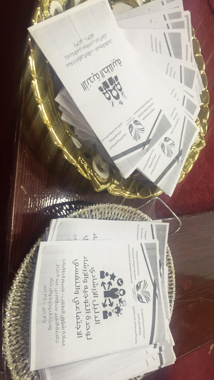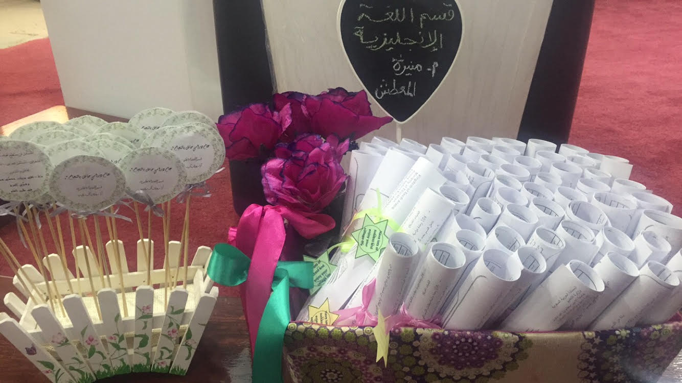 وأخيرًا اختتم الحفل بتوزيع منشورات تعريفية وإرشادية للطالبات عن الأقسام والوحدات وكل ما يخص الطالبة ويهمها خلال فترة تواجدها بالكلية .