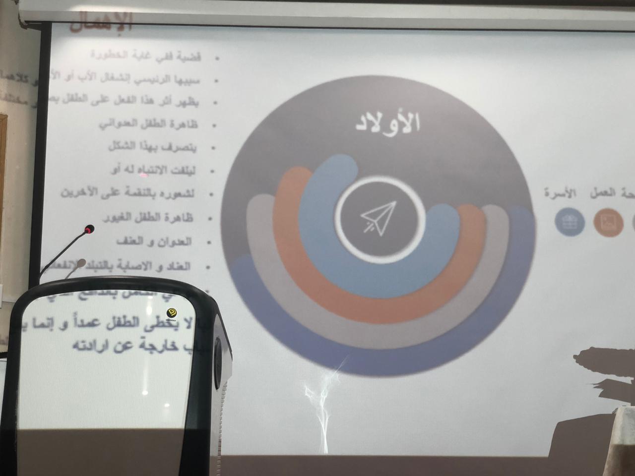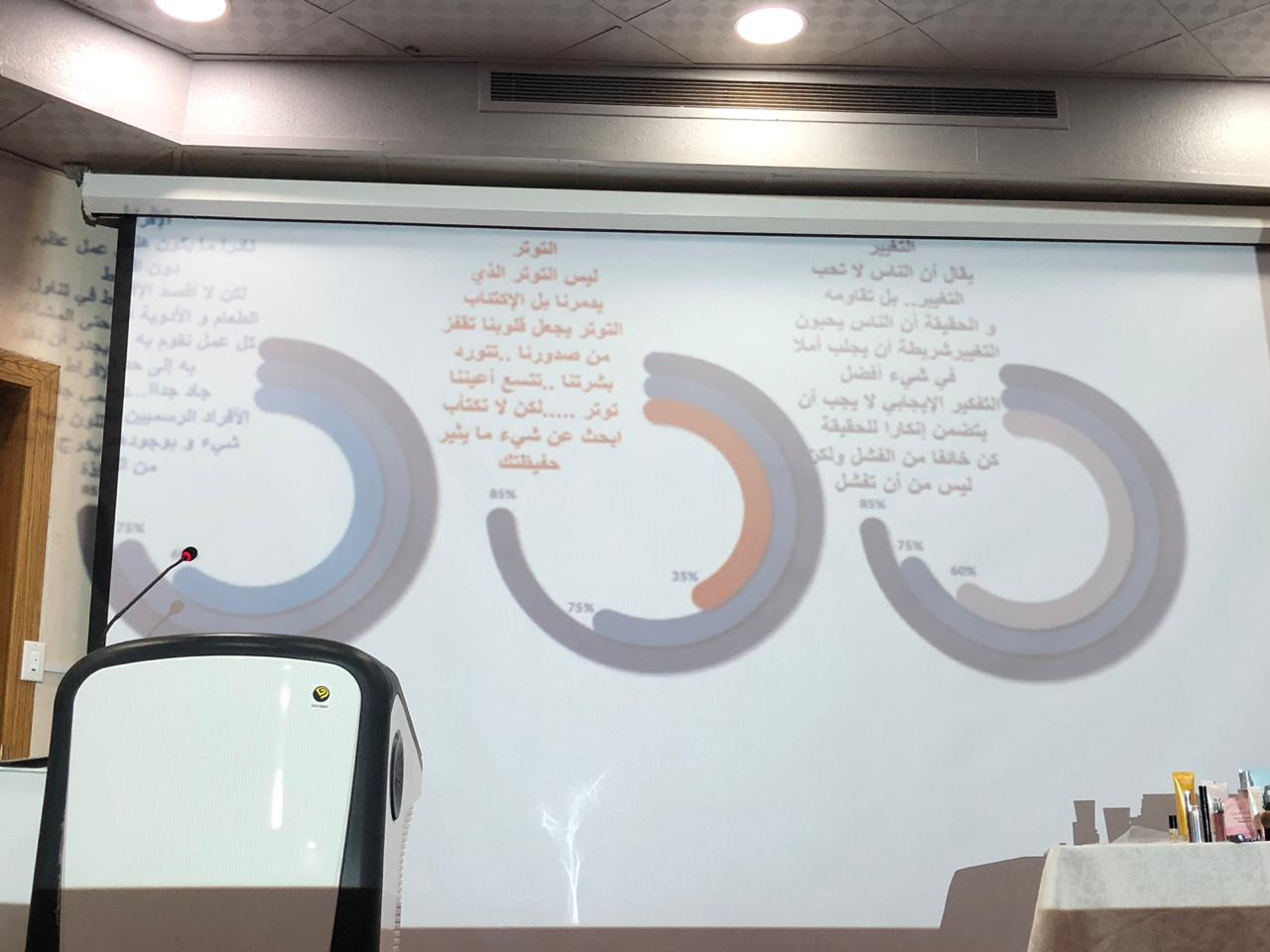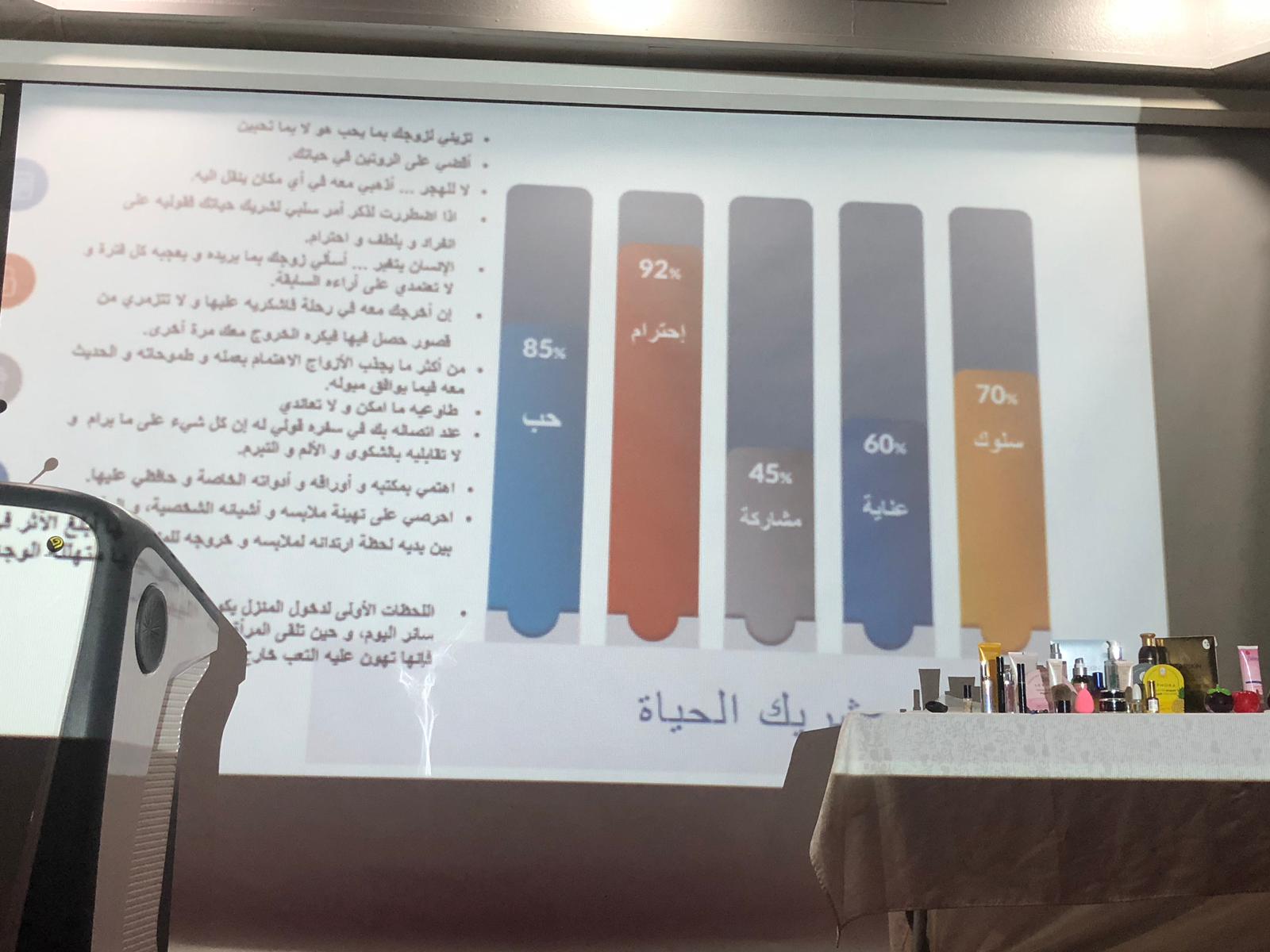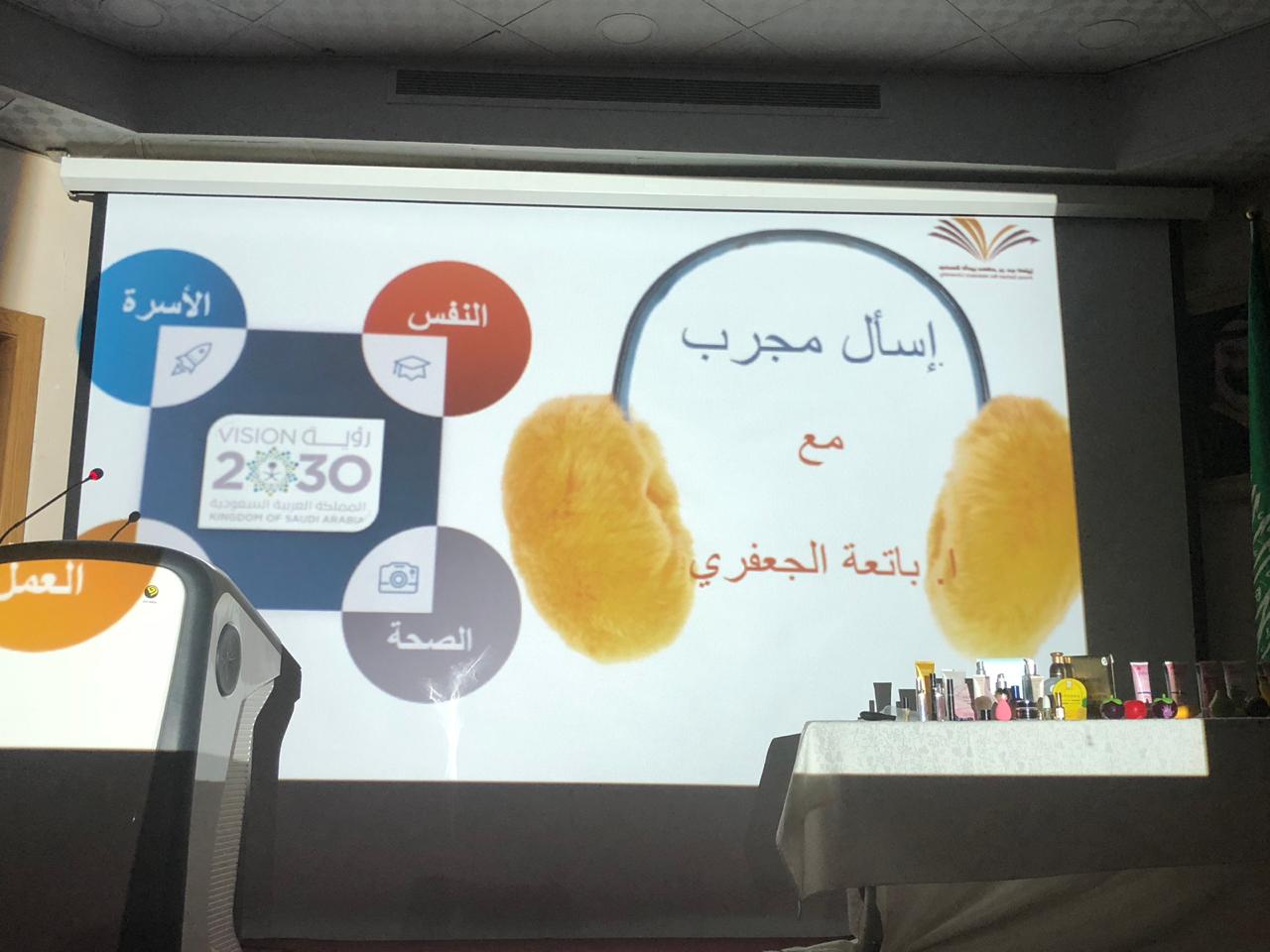 بحضور سعادة عميدة كلية العلوم والدراسات الانسانية بحوطة بني تميم الدكتورة حصة بنت سعود الهزاني ورئيسة قسم الكيمياء الدكتورة اماني فرح الخليفة ومجوعة من منسوبات الكلية من أعضاء هيئة التدريس والإدارايات والطالبات، تم تنفيذ حلقة نقاش بعنوان (اسأل مجرب) يوم الثلاثاء الموافق ٢١ / ٢ / ١٤٤٠هـ في مسرح الكلية. حيث بدأت بترحيب من الاستاذة باتعة الجعفري ووضحت ان البرنامج هو عبارة عن اجابة للأسئلة التي وردتها من الحضور مع ايضاً وجود محاور اخرى بين فقرة والاخرى حيث تكلمت عن دور الاسرة الفعال في تربية الابناء والحياة الاسرية وكيفية اسعاد الذات واهمية الصحة النفسية والاهتمام بجمال المظهر الخارجي حتى يعكس جمال الجوهر والابتسامة وانعكاسها على النفس.وكان من بعض الاسئلة التي وردت :١- كيف تتعاملي مع الطفل العنيد تحت سن السابعة؟ و كيف تتعاملي مع ابنك المراهق؟٢- كيف اتعامل مع الشخصية السلبية؟٣- كيف أكسب محبة الاخرين؟٤- مشاكل الشعر و التساقط٥- كيف توازن بين العمل و الحياة الاسرية؟٦- كيف أكون حليمة؟٧- لا أستطيع الادخار٨- ما معيار النجاح؟ اختتمت البرنامج الاستاذة باتعة الجعفري بشكر الكادر من الاعضاء والاداريات و الطالبات على حضورهن والاستماع وايضاً لأثراء البرنامج بالأسئلة والنقاشات المثمرة حيث قدمت الاستاذة باتعة نهاية البرنامج هدايا رمزية جميلة معبرة عن شكرها وامتنانها للحضور.
