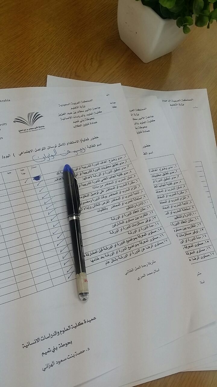 تحت رعاية عميدة كلية العلوم والدراسات الإنسانية بحوطة بني تميم د. حصة بنت سعود الهزاني وبإشراف د. فاطمة التاج و د. بثينة عبدالله نظمت الكلية ورشة عمل بعنوان (الاستخدام الأمثل لوسائل التواصل الاجتماعي) وذلك ضمن فعاليات برنامج جامعة واعية وقد أقيمت الورشة في مدرسة التحفيظ الثالثة بالمحافظة يوم الأحد الموافق 26/ 7/ 1438هـ، تهدف الورشة إلى التعريف بوسائل التواصل الاجتماعي، والتوعية بالاستخدام الأمثل لهذه الوسائل، وكيفية معالجة الاستخدام السلبي لها. وقد لاقت الورشة تفاعل واستحسان منسوبات المدرسة وطالباتها كما تضمنت الورشة طرح مسابقات على ماتم طرحه مع  د. بثينة عبدالله  و أ. فوزية الجمعة.