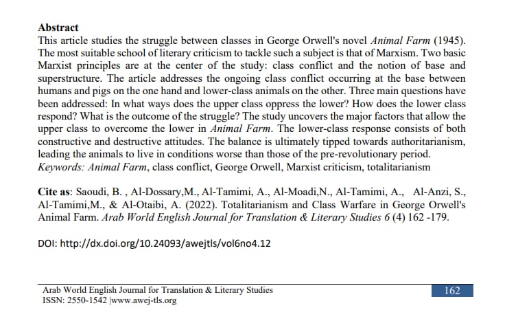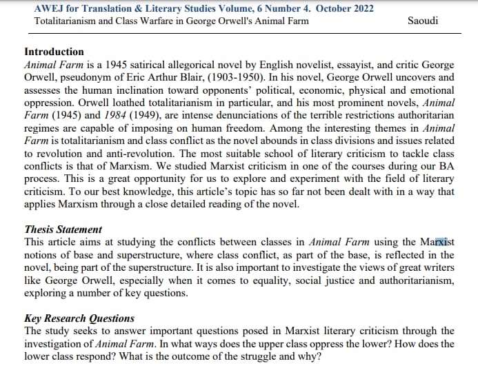 "Totalitarianism and Class Warfare in George Orwell’s Animal Farm"
