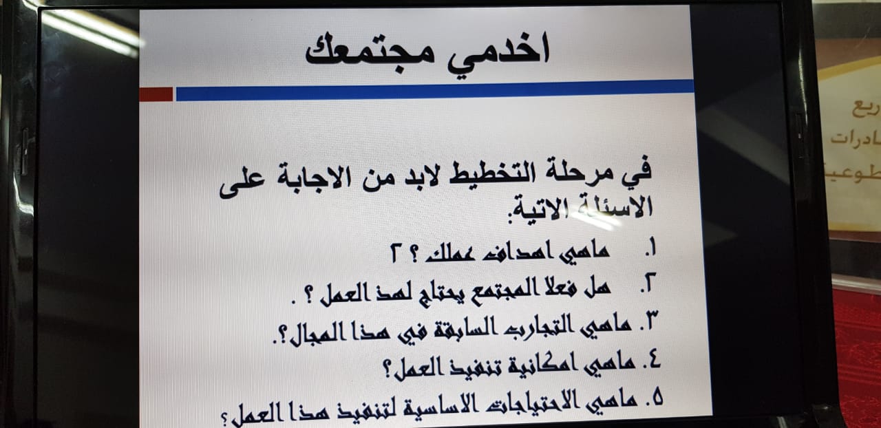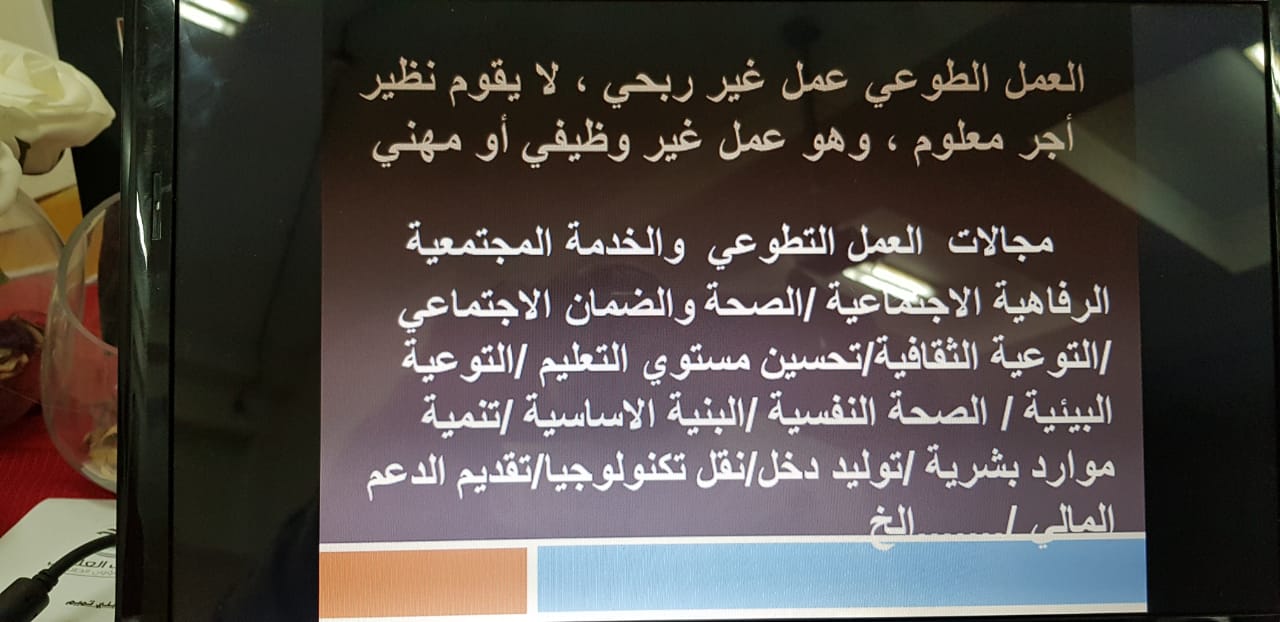 لا شك أن العمل التطوعي من أهم العوامل المؤثرة على إعداد الجيل الجديد؛ فهو يدخل ضمن تكوينهم خُلقياً ونفسياً واجتماعياً، كما يحفز الطلاب والطالبات خاصة على الانخراط في الأعمال الإنسانية، والإفادة من الطاقات الشبابية وتنميتها لخدمة المجتمع. يتبنى الملتقى العلمي الثالث بجامعة الأمير سطام بن عبد العزيز خدمة المجتمع والمبادرات التطوعية كأبرز المحاور التي يتم بحثها وتنميتها في كل دورة للملتقى. تعزيزاً لهذا المحور وتحت رعاية عميدة كلية العلوم والدراسات الانسانية بحوطة بني تميم الدكتورة حصة الهزاني أقيمت ورشة عمل تعريفية لمحور الخدمة المجتمعية والمبادرات التطوعية بتاريخ الاثنين 15/ 5/ 1440 هـ بقاعة التدريب. يأتي ذلك ضمن استعدادات الكلية وفعاليات التحضير للملتقي العلمي الثالث لطلاب وطالبات جامعة سطام بن عبد العزيز وبتقديم واعداد لجنة الخدمة المجتمعية بالكلية الدكتورة عديلة حسين والدكتورة اميرة صالح. تطرقت الورشة لأهم البنود التي يجب مراعاتها للمشاركة والخطوات التي يجب اتباعها حسب نوع المشاركات توعوية او ميدانية، كما شملت الورشة عرض لبعض المشاركات السابقة والإجابة على أسئلة المشاركات