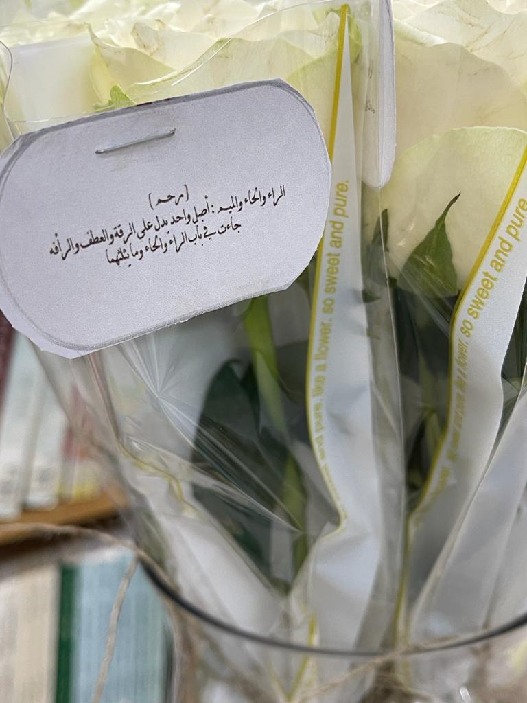 اشتمل البرنامج على عرض تقديمي لتوضيح بعض الكلمات وتعريفها مثل: رحم – ود – وله – ولى – حن. كما تم تقديم ضيافة وتوزيعات تحتوي على بعض الكلمات وتعريفها، وقد بلغ عدد الحاضرات (11 طالبة).