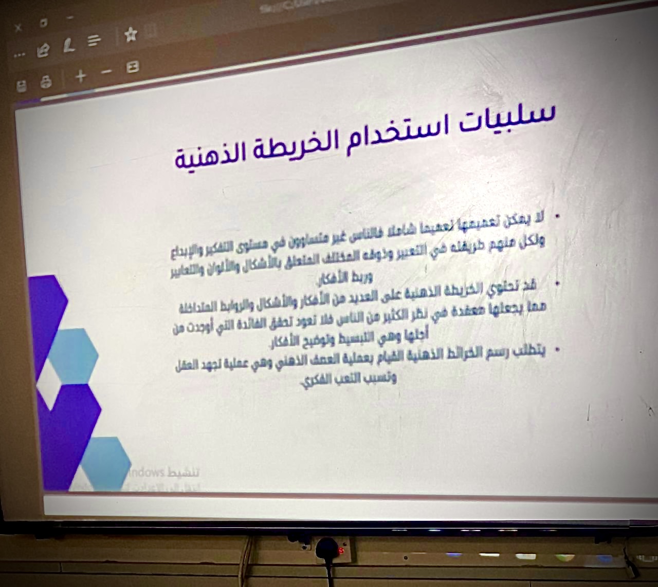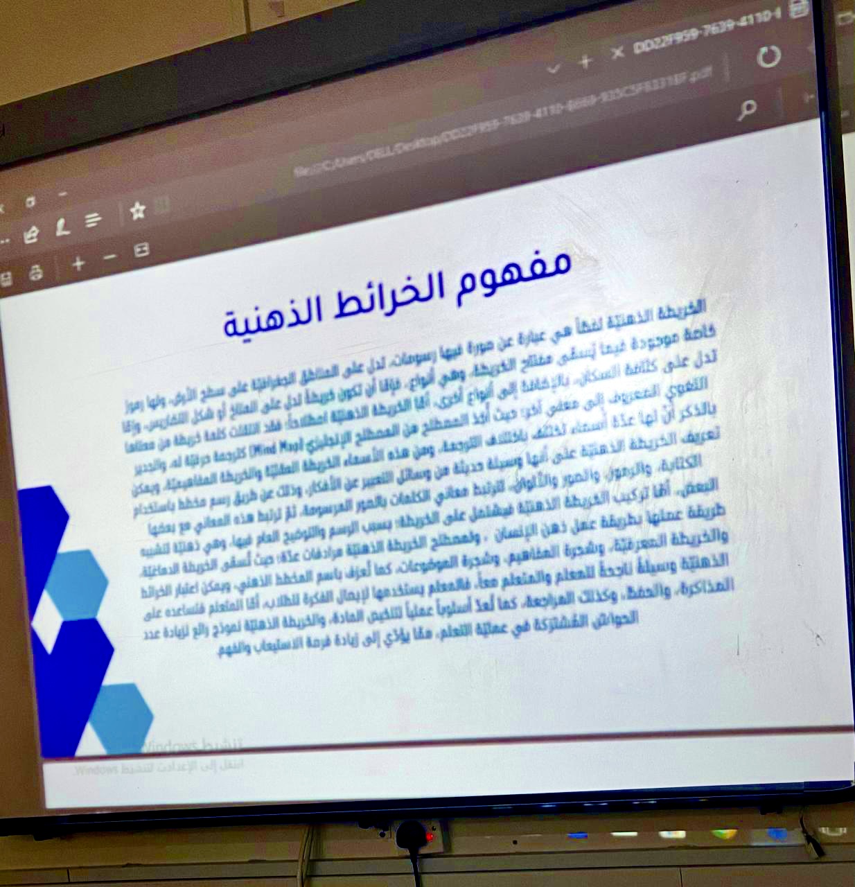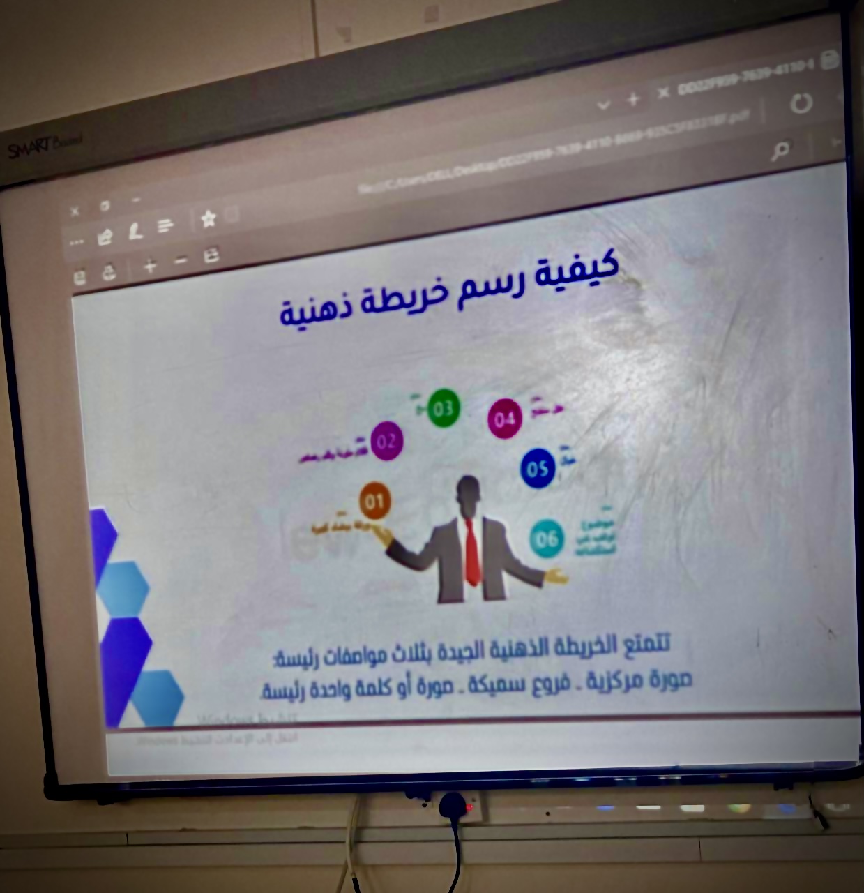 الخريطة الذهنية تقنية مبنية على نظام الرسومات، وهي مزودة بمفاتيح من شأنها أن تمكن الفرد من استخدام المهارات العقلية، ويمكن الاستفادة منها في جميع مجالات الحياة، ولكونها وسيلة ناجحة للمعلم والمتعلم معا، نظم المجلس الاستشاري الطلابي تحت رعاية عميدة كلية العلوم والدراسات الإنسانية بحوطة بني تميم د. حصه بنت سعود الهزاني برنامج بعنوان (قوة وأهمية الخرائط الذهنية في التعلم ) بإشراف أ. منيره إبراهيم التميمي وذلك يوم الأحد الموافق: 1/ 6/ 1444هــ الساعة 9:30 صباحًا بقاعة التدريب قدمتها طالبات المجلس الطلابي مي العميره و أميره البريك، في بداية البرنامج تم عرض مقدمة بسيطة عن الخرائط الذهنية ومفهومها ومؤسسها ثم فوائد وسلبيات استخدامها وكيفية رسم الخريطة الذهنية ومميزاتها، هدف هذا البرنامج إلى تنمية المهارات الإبداعية وزيادة فرص الاستيعاب لدى المتعلم.