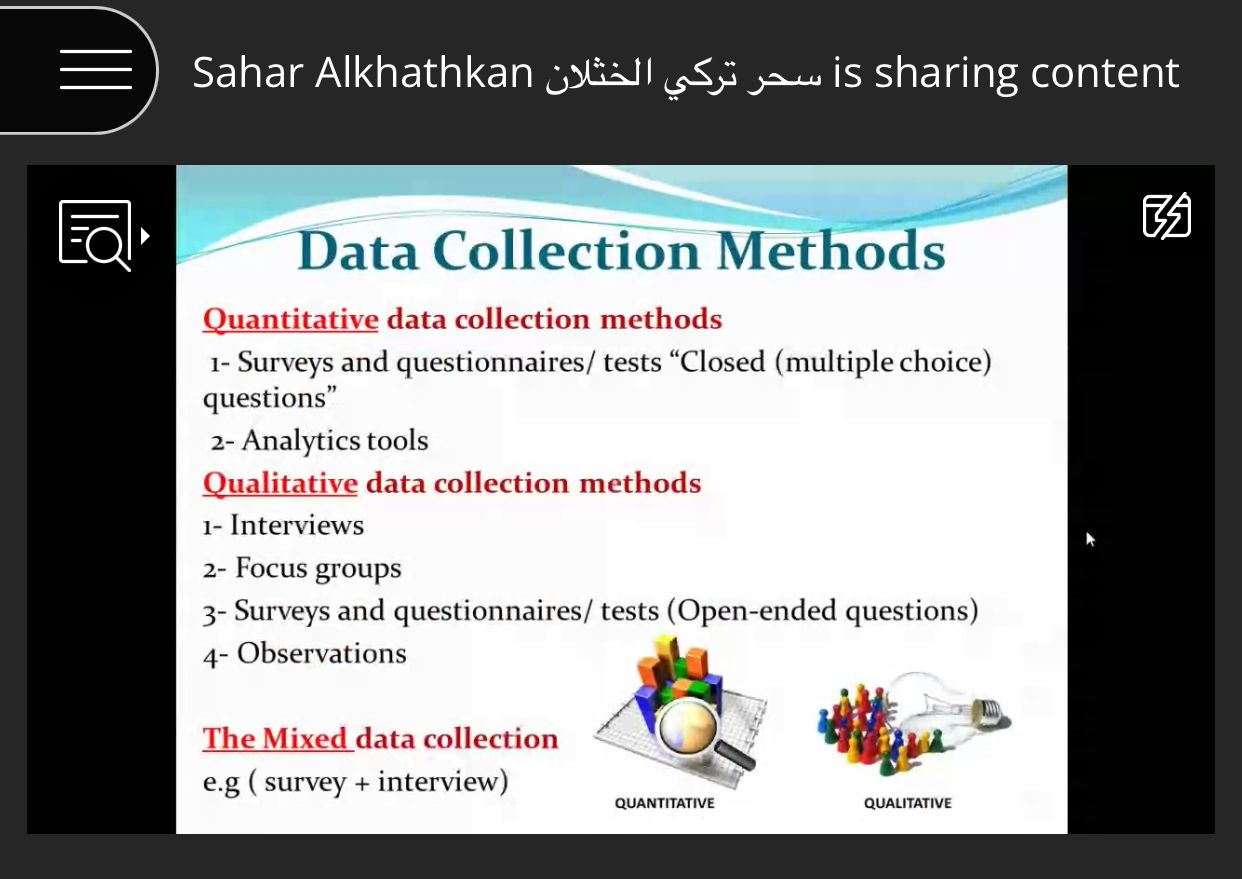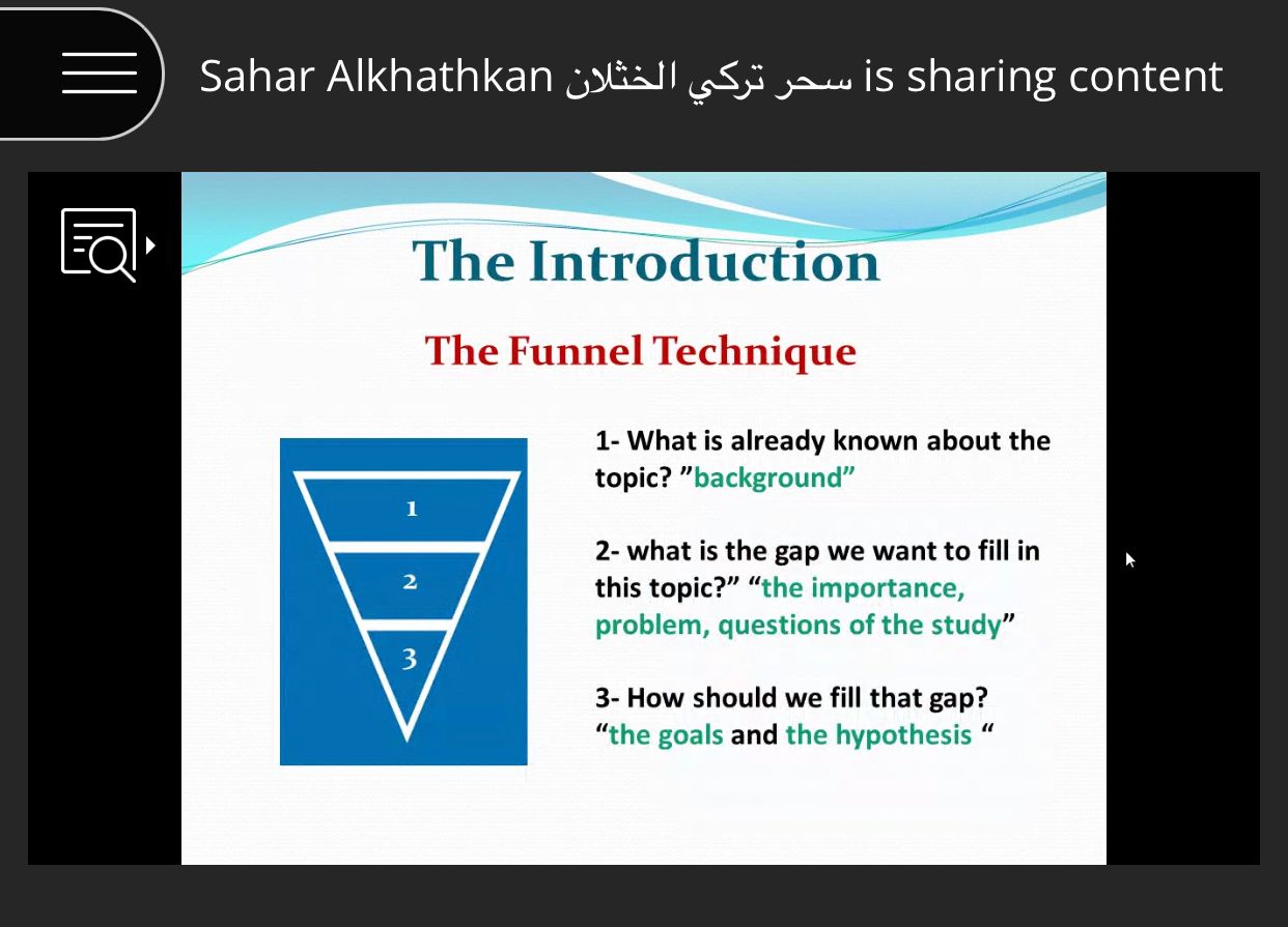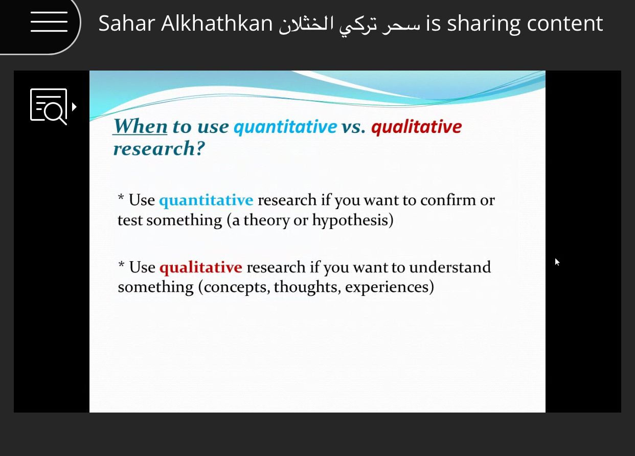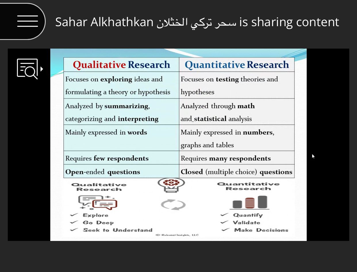 ومن تلك الأهمية ينبثق حرصنا على تمكين الطالب من تلك المهارة استيعاباً وتطبيقاً ليتمكن من استغلالها في نتاج حقيقي دائم. تحت رعاية عميدة كلية العلوم والدراسات الإنسانية بحوطة بني تميم د. حصة بنت سعود الهزاني نظمت لجنة مشاريع التخرج التابعة لوحدة الخريجات دورة تدريبية بعنوان (طرق وآليات البحث العلمي) تحت إشراف المحاضر بقسم اللغة الإنجليزية أ. سحر الخثلان وذلك يوم الأربعاء تاريخ 1444/6/11هـ الموافق 2023/1/4 الساعة السابعة مساءً على موقع البلاك بورد. وبحضور طالبات من مختلف مستويات قسم اللغة الإنجليزية بالإضافة للطالبات المتوقع تخرجهن.